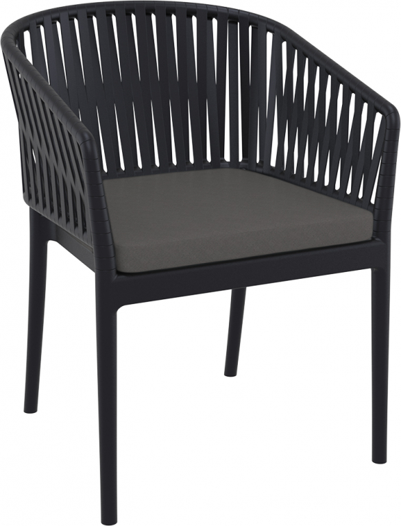 Кресло пластиковое с подушкой Siesta Contract Portofino, черный, темно-серый