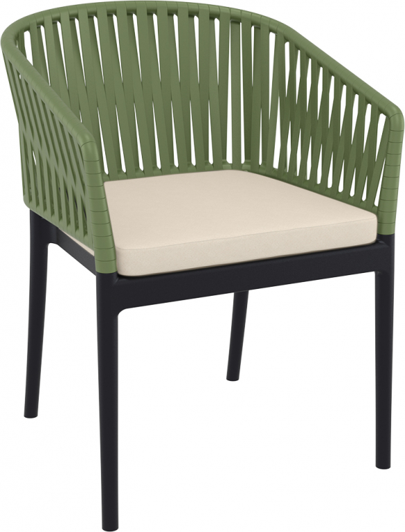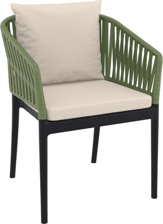 Кресло пластиковое с подушками Siesta Contract Portofino, черный, оливковый, бежевый