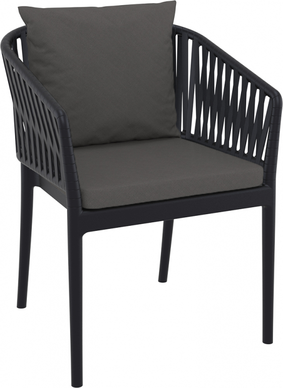 Кресло пластиковое с подушками Siesta Contract Portofino, черный, темно-серый