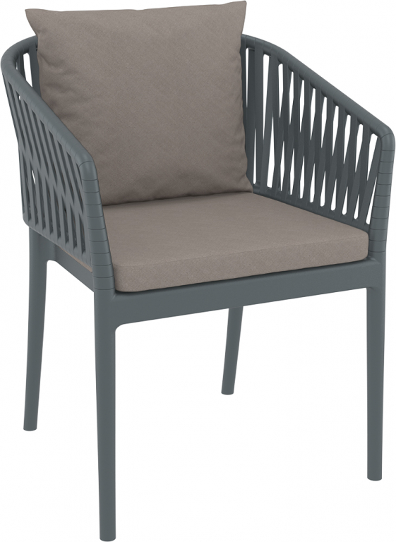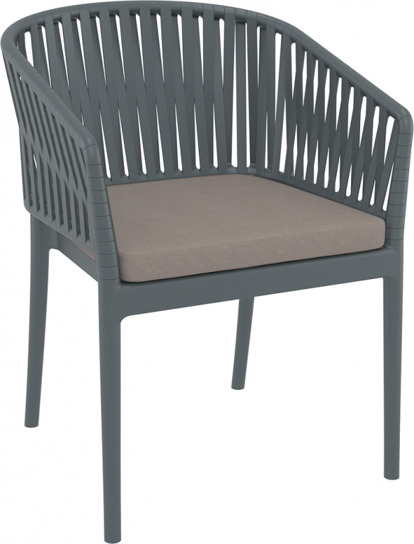 Кресло пластиковое с подушками Siesta Contract Portofino, темно-серый, светло-коричневый
