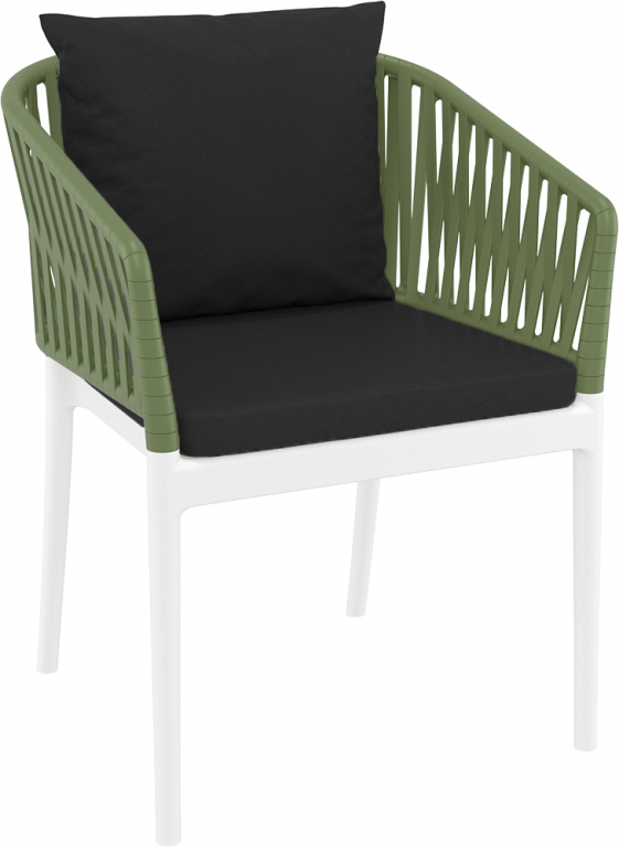 Кресло пластиковое с подушками Siesta Contract Portofino, белый, оливковый, черный