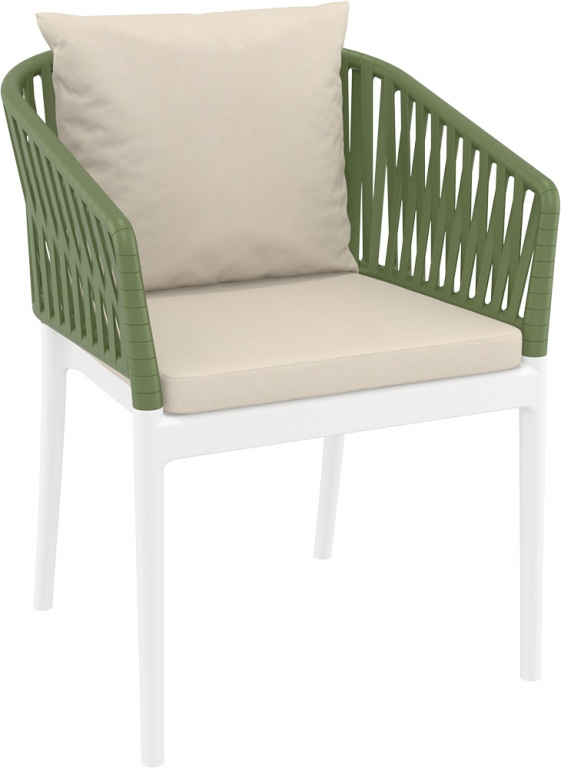 Кресло пластиковое с подушками Siesta Contract Portofino, белый, оливковый, бежевый