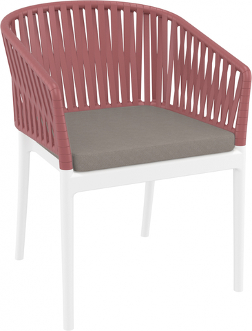 Кресло пластиковое с подушкой Siesta Contract Portofino, белый, марсала, светло-коричневый