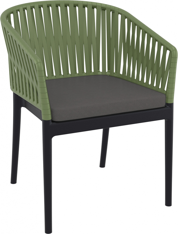 Кресло пластиковое с подушкой Siesta Contract Portofino, черный, оливковый, темно-серый
