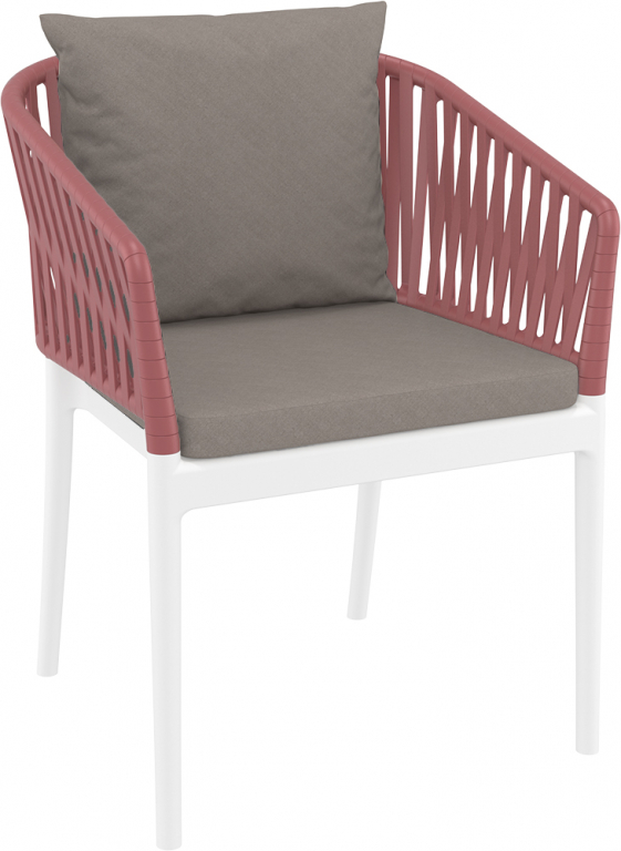 Кресло пластиковое с подушками Siesta Contract Portofino, белый, марсала, светло-коричневый
