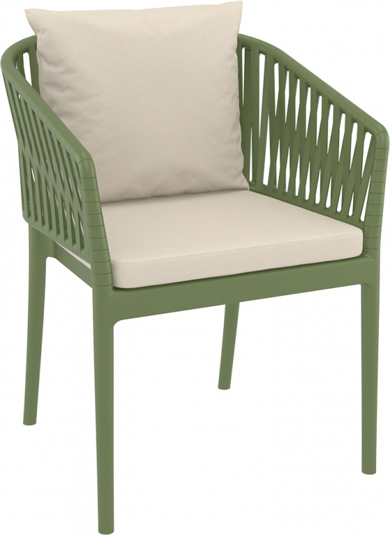 Кресло пластиковое с подушками Siesta Contract Portofino, оливковый, бежевый