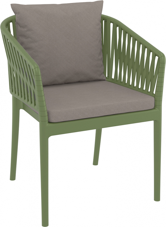 Кресло пластиковое с подушками Siesta Contract Portofino, оливковый, светло-коричневый