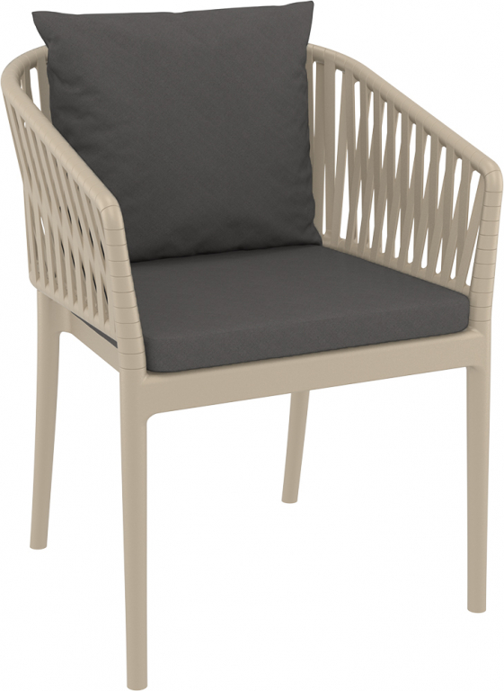 Кресло пластиковое с подушками Siesta Contract Portofino, бежевый, темно-серый