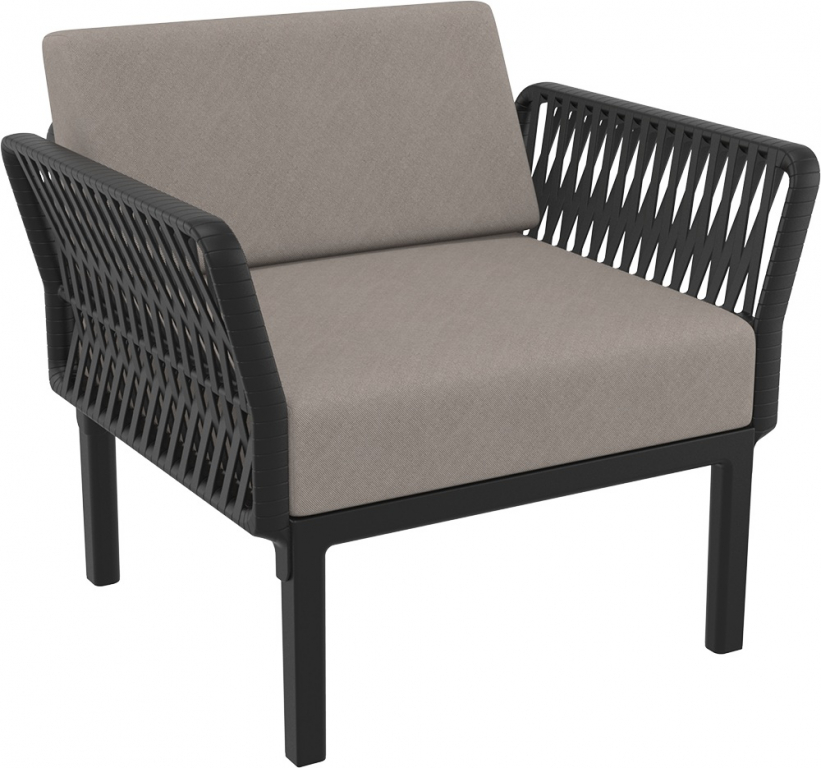 Кресло пластиковое с подушками Siesta Contract Portofino Lounge, черный, светло-коричневый