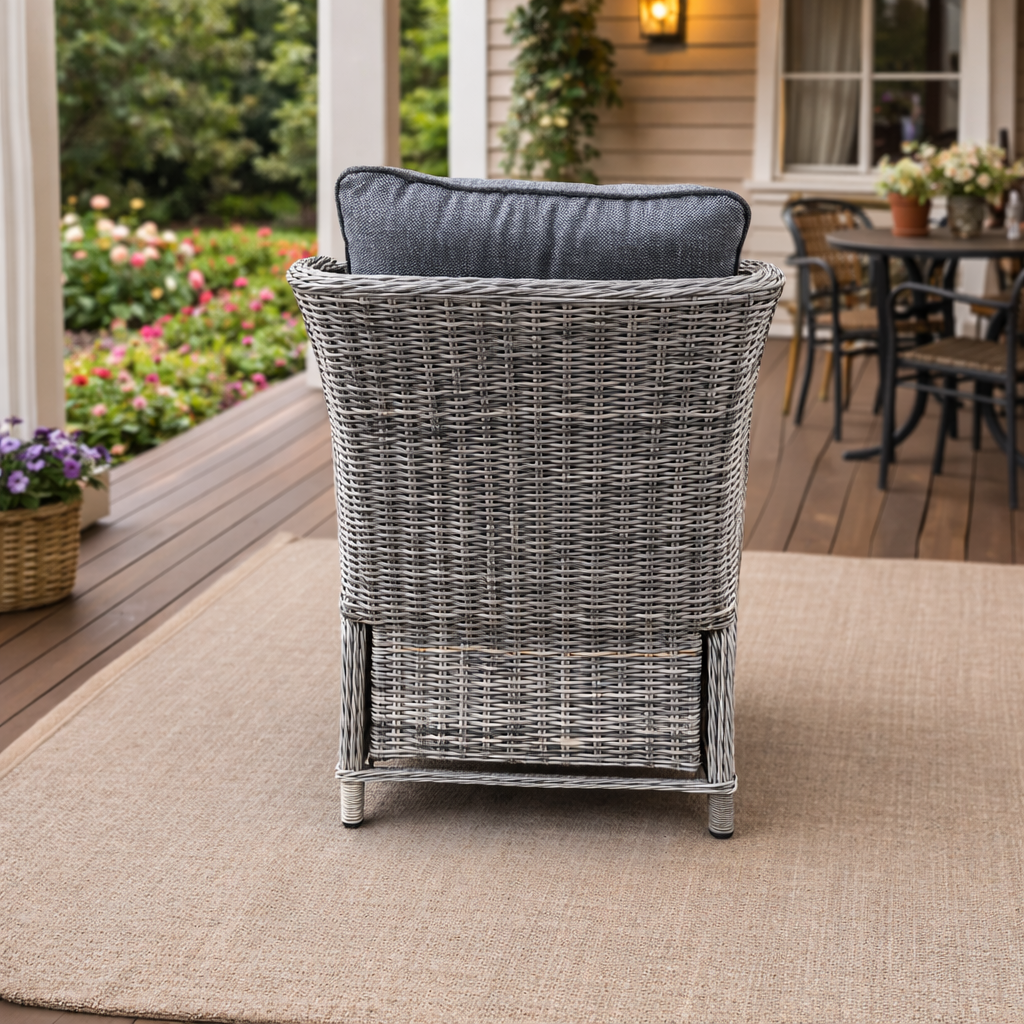 Материал каркаса: Аллюминий Материал чехлов на подушки: олефин Наполнитель подушек: пенополеуретан/ холлофайбер Цвет подушек: Серый Цвет ротанга: Серый Ротанг - сфераХарактеристики