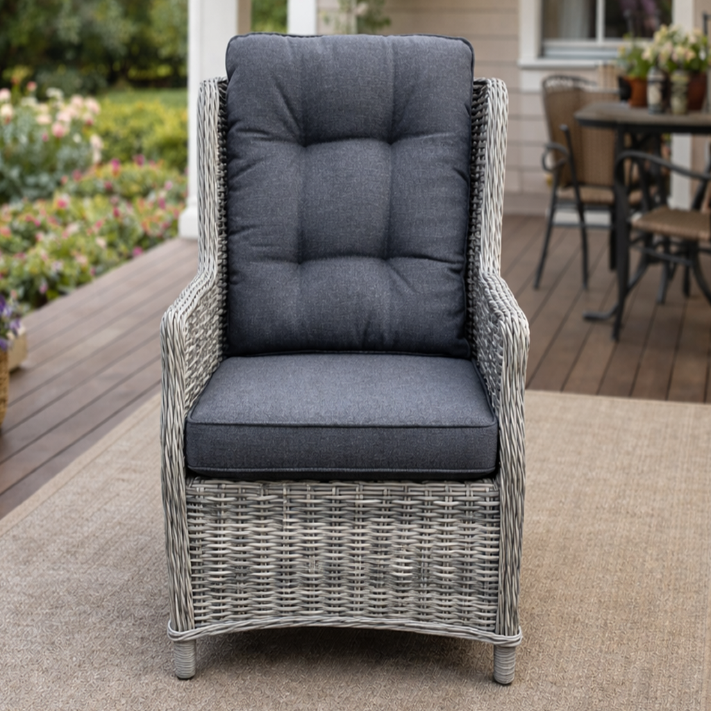 Материал каркаса: Аллюминий Материал чехлов на подушки: олефин Наполнитель подушек: пенополеуретан/ холлофайбер Цвет подушек: Серый Цвет ротанга: Серый Ротанг - сфераХарактеристики