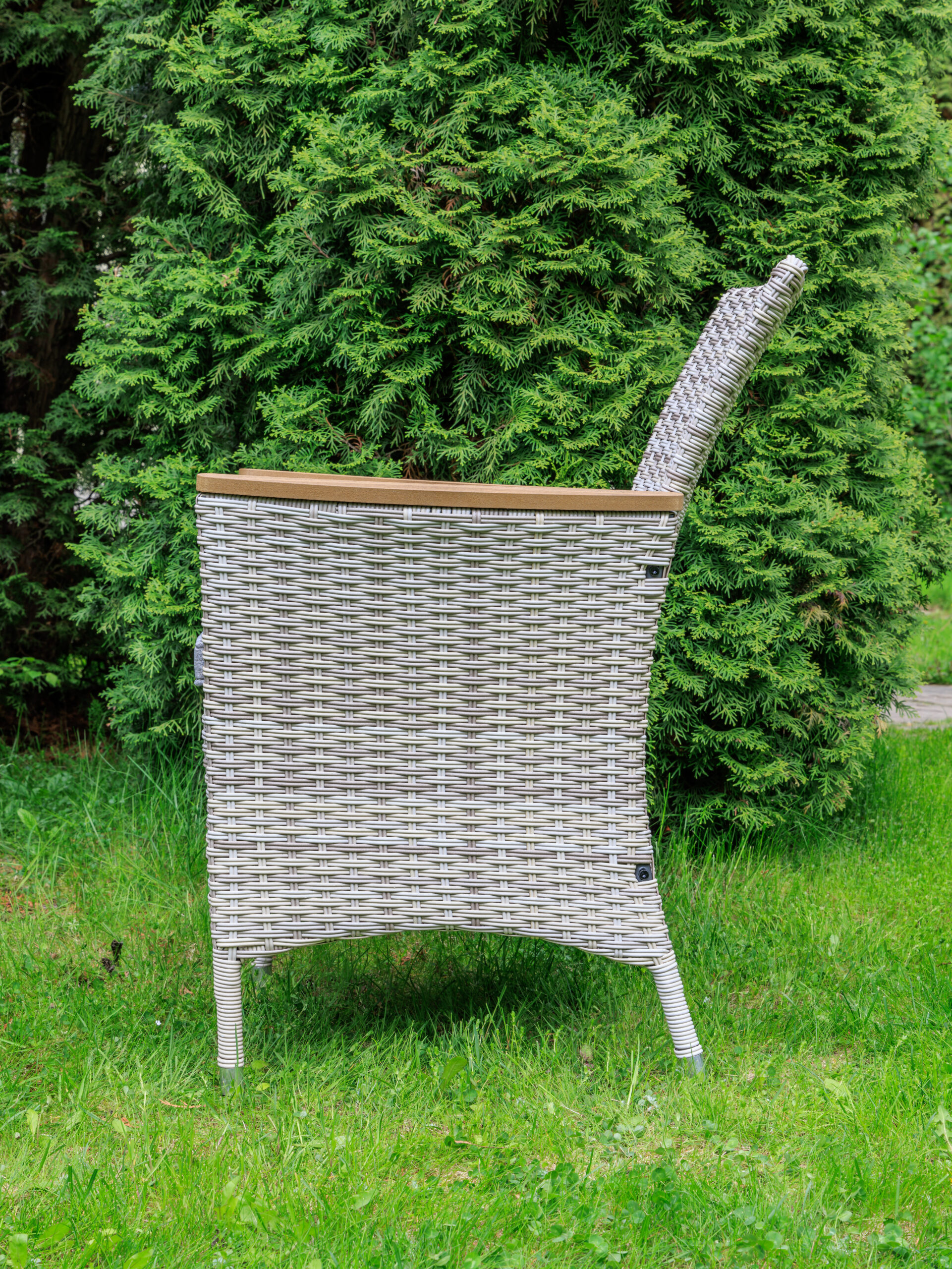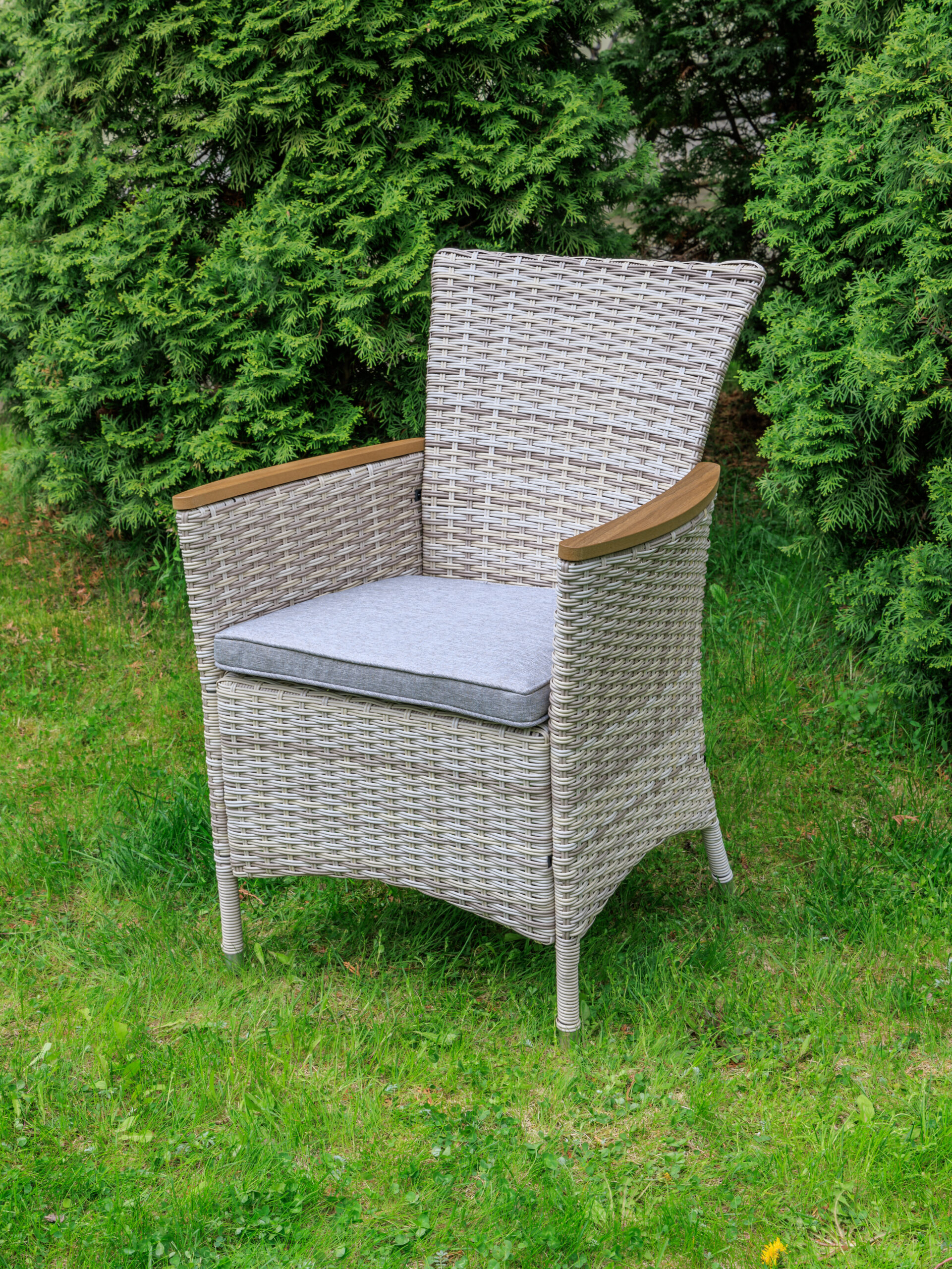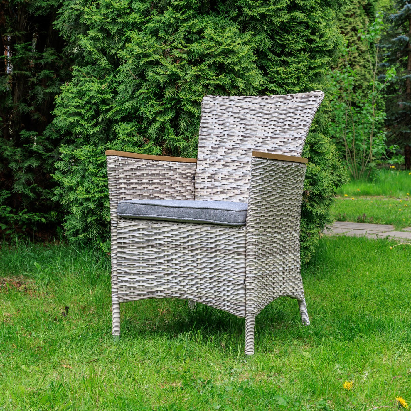 Комплектация и габариты: Кресло - 60х59х87 см Подушка для сиденья - 47х7х44 см Материалы: Материал комплекта - искусственный ротанг (ручного плетения) Материал каркаса – сталь, окрашенная порошковым методом Материал чехла на подушки - олефин (водоотталкивающая ткань) Материал наполнителя подушек для сидения - поролон Цвет - Бежевый Цвет подушек - Бежевый Дополнительная информация: Количество посадочных мест – 1 человек Максимальная нагрузка на посадочное место - 150 кг Чехлы съемные - да Температурный режим - от -50?C до +50?C Сочетается с комплектами бренда ROYAL FAMILY в бежевом цвете Накладки на ножки - да (пластиковые) Категория ротанга - первичная Держатели и крепления подушек зависят от поставки и не являются неотъемлемой частью кресла Гарантия и эксплуатация: Гарантийный срок - 1 год Эксплуатационный срок - 10 лет Страна производитель - КитайХарактеристики