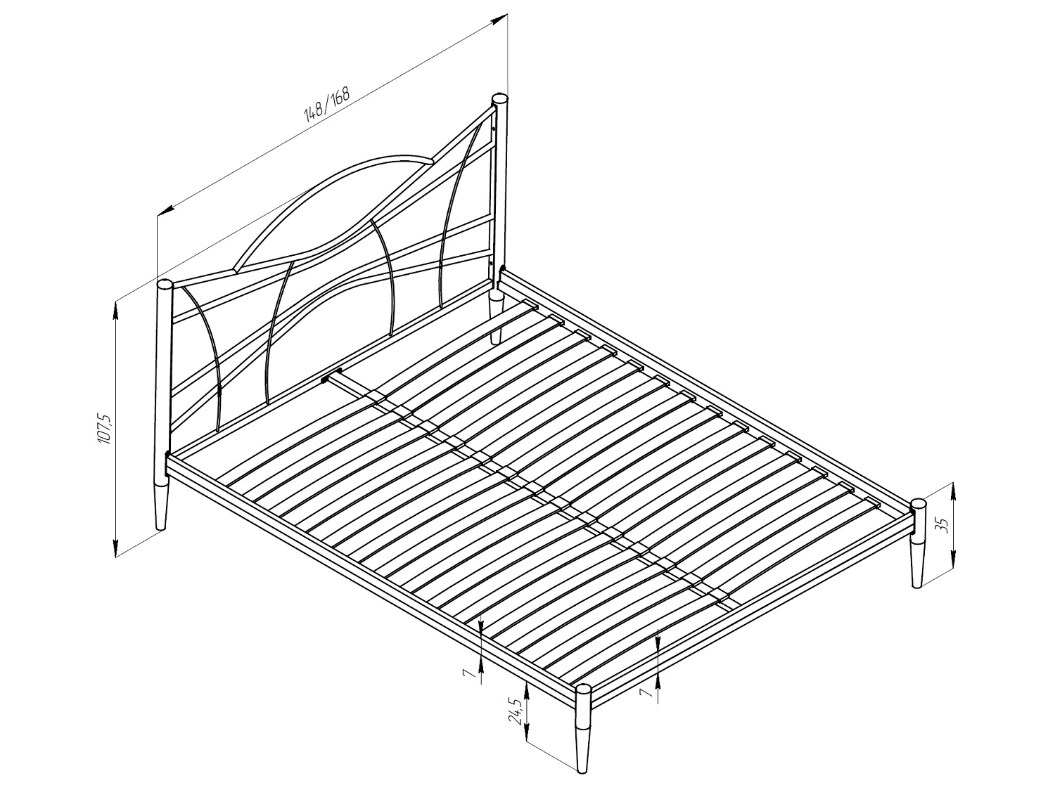 Материал спинок: металл Материал ножек: металл Цвет спинок: черный (RAL 9005) Цвет ножек: чёрный (RAL 9005) Максимальная нагрузка: 400 кг Максимальная равномернораспределенная нагрузка на кровать шириной 1200-1800мм не более 400 кг..Характеристики