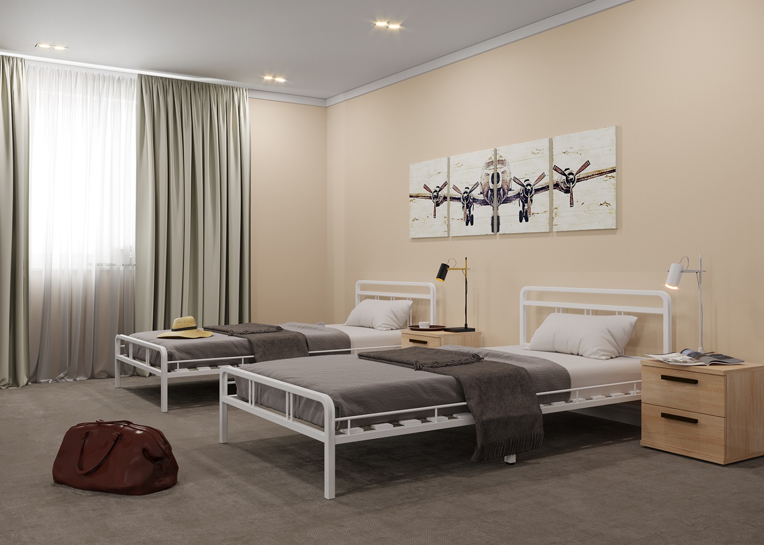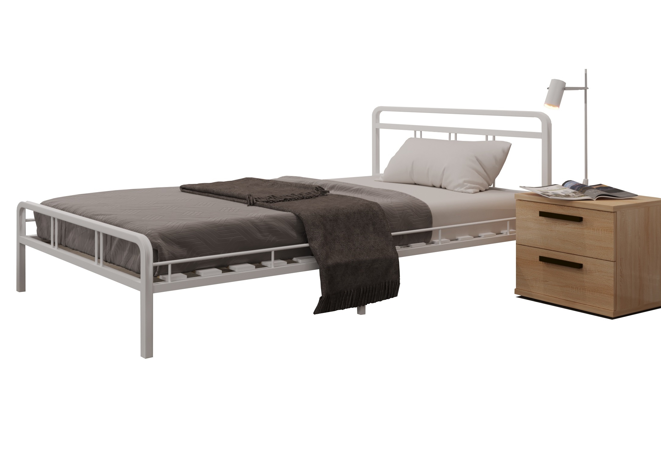 Металлическая кровать Леон. Добавляет в интерьер легкости. Металлическая кровать отличается устойчивостью и долговечностью. Габариты (ДхШхВ) см: 206х166х90,5 Габариты спального места (ДхШ) см: 200х160 Высота спального места: 24,5 см Высота изножья: 46,5 см Высота изголовья: 90,5 см Материал спинок: Металл Материал ножек: Металл Цвет спинок: Кремово-Белый (RAL 9001) Цвет ножек: Кремово- Белый (RAL 9001) Максимальная равномернораспределенная нагрузка на кровать шириной 1200-1800мм не более 400 кг.Характеристики