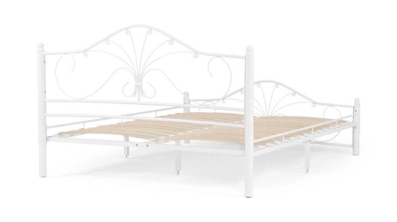 Кровать Прованс с элементами ковки. Основание - металлическое с березовыми ламелями, спинка и изножье декорированы фигурными металлическими элементами. Кровать поставляется в разобранном виде в 4 коробках. Металлические кровати отличаются надежностью и привлекательной ценой. Кровать Прованс превосходно смотрится не только в интерьере городской квартиры, но также в спальне загородного дома или дачи.Максимальная равномерно распределенная нагрузка на кровать шириной 1200-1800мм не более 400 кг.