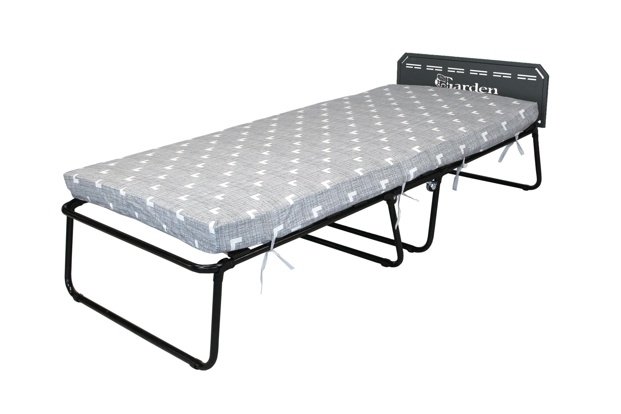 Габариты изделия (Ш/ГхДхВ) : 94х205х46 Габариты в сложенном виде (ШхГхВ) : 90х30х120 Габариты элементов (Ш/ГхДхВ) : мягкий элемент 205х96х10см Материал каркаса : сталь Труба : Ø25 Покрытие : краска порошковая полимерная Узор ткани : тетрис Цвет чехла мягкого элемента/матраса : серый Материал матраса : полиэфир Толщина матраса : 100 Наполнитель мягкого элемента/матраса : регенерированное волокно Тип основания : ламели деревянные Допустимая нагрузка : 120 Страна производства : РОССИЯ Гарантийный срок : 12Характеристики