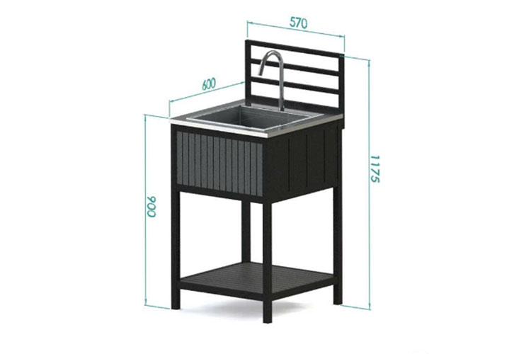 Модуль уличной кухни из алюминия Joygarden БЕЙС (мойка из нержавеющей стали), темно-серый графит