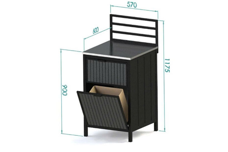 Модуль уличной кухни из алюминия Joygarden БЕЙС (полка и мусорный ящик), темно-серый графит