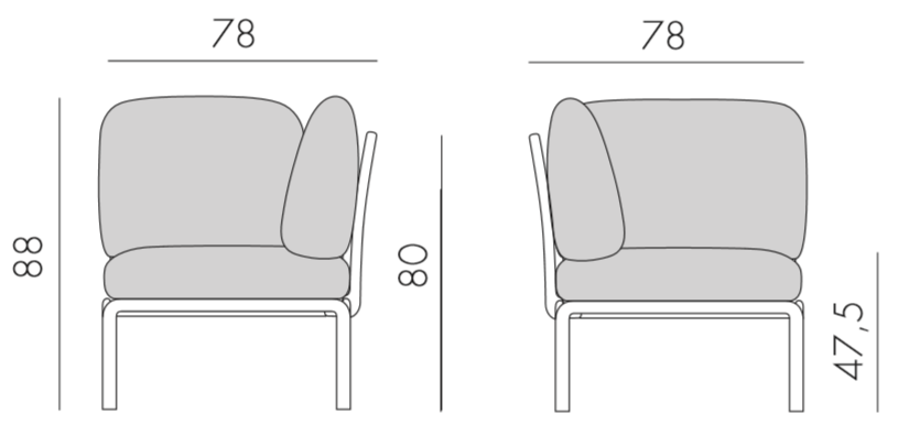 Дизайн: Raffaello Galiotto. На выставке Salone del Mobile 2018 в Милане Nardi представили новую коллекцию модульной мебели Komodo, куда входят различные модульные элементы, благодаря чему можно создавать различные комбинации. Модули Komodo выполнены из стеклопластика, имеют складные спинки и боковины, съемные подушки, благодаря чему можно составить диван любой длины, превратить отдельные модули в столики или пуфы. Ветвистая переплетенная конструкция вытекает из строгого геометрического дизайна, который также включает инновационную систему соединения между спинкой и сиденьем, осуществленную с помощью простого вращения. Последнее решение позволяет избежать непривлекательных стыков и открытых отверстий и поддерживает эстетическую гармонию плетенной конструкции на сиденье и спинке. Особенности: Угловой модуль включает в себя: 1 сиденье, 1 спинку, 1 подлокотник, 1 подушку на сиденье, 1 подушку на спинку, 1 подушку на подлокотник. Модель выполнена из полностью перерабатываемого материала - стеклопластика (полипропилен, стекловолокно) - прочного, нетоксичного и антистатичного, устойчивого к любой погоде и средам с повышенной соленостью. Возможные цвета каркаса: белый (bianco), антрацит (antracite), тортора (tortora), агава (agave). Возможные цвета подушек из акрила: серый (grigio), розовый (rosa quarzo). Возможные цвета подушек из ткани Sunbrella: синий (adriatic), лед (ghiaccio), авокадо (avocado), джунгли (giungla), холст (canvas). Возможные цвета подушек из ткани TECH: панама (panama). Сиденья можно закрепить с одной стороны, а спинки и подлокотники можно прикрепить с любой стороны. Матовая отделка, нескользящие ножки. Изделие сертифицировано CATAS. Открыть технические характеристики. Открыть инструкцию по сборке. Элементы серии Кomodo можно комбинировать между собой в любой последовательности, создавая индивидуальные решения для Вашего интерьера.Характеристики