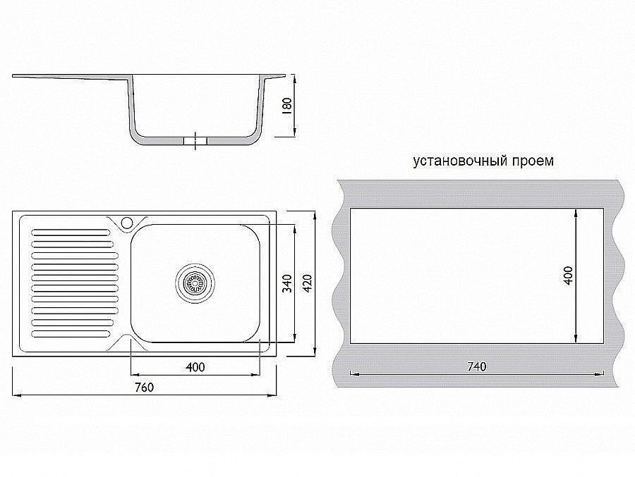Кухонная врезная прямоугольная мойка с одним большим крылом и одной чашей, расположенной слева. Подходит для тумб от 500 мм. У чаши есть шумопоглощающая накладка. Площадка под смеситель справа от чаши в верхней части. Выпускается с переливом для воды в чаше. В комплект входит: сифон с переливом, лента уплотнительная и крепеж. Внимание! Гофра в комплект не входит.Характеристики