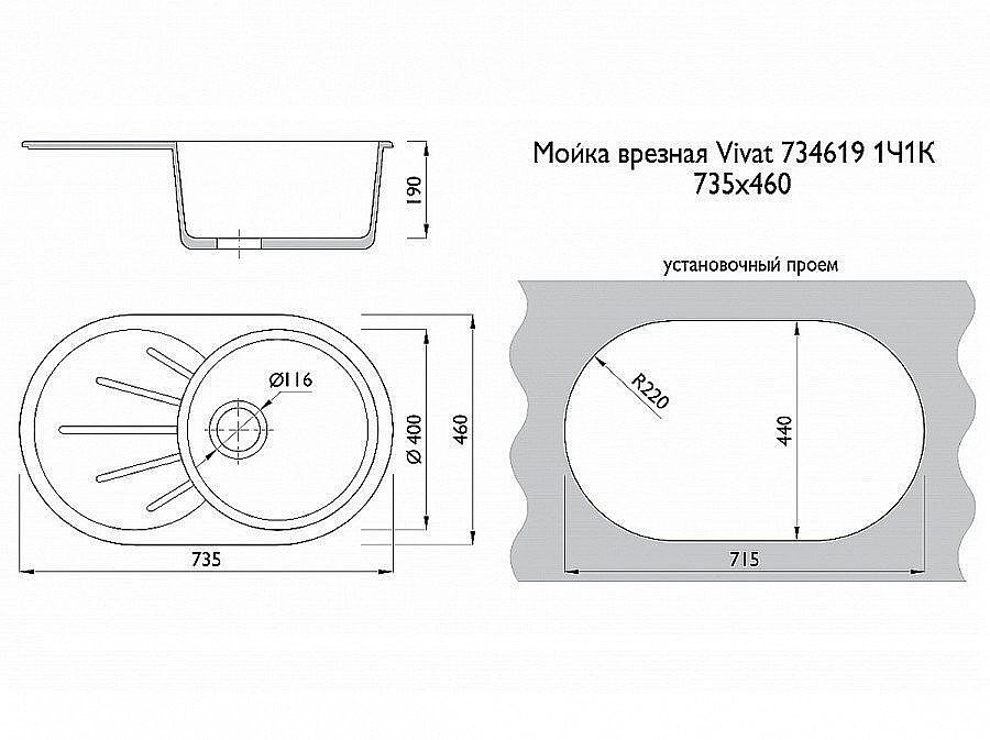 Мойка врезная Vivat 734619 1Ч1К Серый Искусственный камень