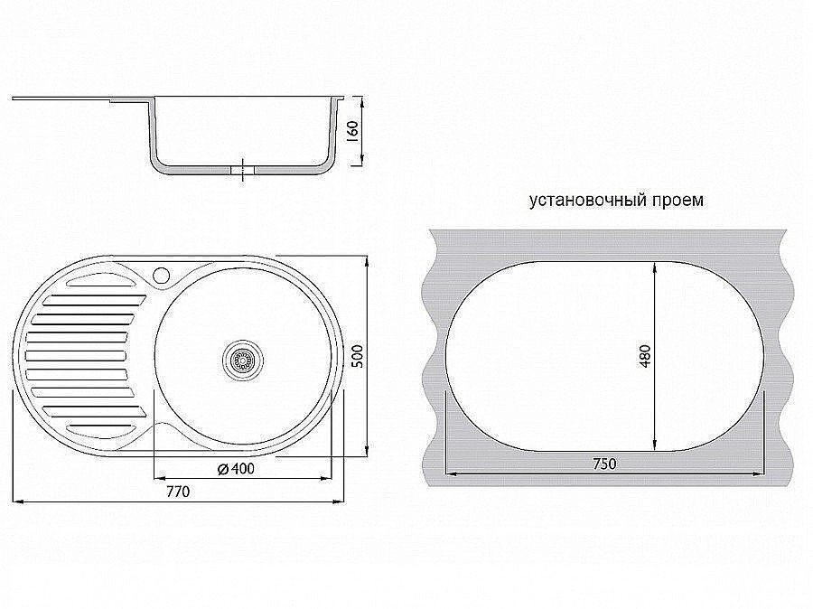 Кухонная врезная мойка с одним удобным широким крылом и одной круглой чашей, расположенной справа. Подходит для тумб от 500 мм. У чаши есть шумопоглощающая накладка. Площадка под смеситель слева от чаши в верхней части, выпускается с переливом для воды в чаше. В комплект входит: сифон с переливом, лента уплотнительная и крепеж. Внимание! Гофра в комплект не входит.Характеристики