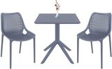 Комплект Sky Air состоит из квадратного стола и двух стульев. Квадратный пластиковый стол Sky со столешницей из погодостойкого пластика и каркасом из металла. Стул Air с перфорированными сиденьем изготавливается из полипропилена, упрочненного стекловолокном, полученным с использованием новейшего поколения технологий формования пластмасс под давлением.