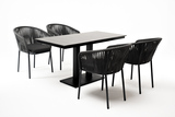 Обеденная группа «Каффе Дабл» рассчитана на 4 персоны. В состав комплекта входит: - Стол «Каффе» из HPL, размер столешницы - 140×70 см, цвет «серый гранит», подстолье двойное черное металл. - 4 плетеных стула «Бордо» из плоского роупа, размером - 570×620×775 мм, цвет роупа - серый, каркас - темно-серый (RAL7024). "Бордо" стул плетеный из роупа, каркас алюминий темно-серый (RAL7024) муар, роуп серый 15мм, ткань темно-серая 027 4шт. 570Х620Х775, "Каффе" обеденный стол из HPL 140х70см, цвет "серый гранит", подстолье двойное черное 1шт. 1 400Х700Х750,Характеристики
