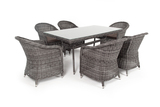 Садовая обеденная группа «Эспрессо» для шестерых персон в цвете графит. В комплекте: - прямоугольный обеденный стол «Латте», размером - 1600×900×750 мм. - 6 кресел «Равенна» с габаритами 570×680×810 мм. Каркас мебели сделан из прочного алюминия, который выдерживает большие нагрузки. Оплетка выполнена из искусственного ротанга ручного плетения – всесезонного износостойкого материала. Он может долго находиться под солнечными лучами и даже при низких температурах. Стеклянная столешница, толщиной 5 мм, идет в комплекте со столом. Подушки на плетеных стулья со съёмными чехлами и водоотталкивающей пропиткой. "Латте" плетеный стол из искусственного ротанга 160х90см, цвет графит 1шт. 1 600Х900Х750, "Равенна" плетеное кресло из искусственного ротанга, цвет графит 6шт. 570Х680Х810,Характеристики