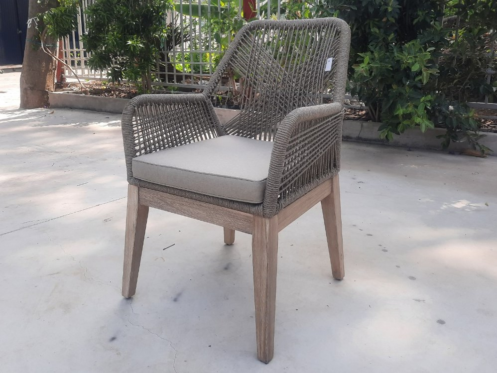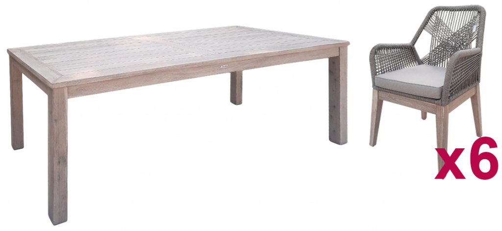 Комплект обеденной мебели Kia Belle состоит из стола Kia и 6-х кресел Belle и украсит любое открытое пространство: сад загородного дома, стильную террасу ресторана или уличного кафе. Изготовленная из массива акации, полученного экологически безопасным способом, в сочетании с ручным плетением из роупа, мебель идеально подходит для придания нотки тренда и индивидуальности любому пространству, как в помещении, так и на открытом воздухе. Переплетение веревок на спинке и подлокотниках кресел создает очень гармоничную визуальную игру пересечений и обеспечивает изысканный небанальный эстетический вид. Применение специально разработанных высококачественных материалов позволяет использовать комплект Kia Belle на открытом воздухе в полной безопасности, обеспечивая максимальную защиту от атмосферных воздействий без ущерба для эстетики и комфорта. Состав комплекта: Обеденный стол Kia, размер 2100х900х750 мм, вес 49 кг - 1 шт. Кресло Belle, размер 580х650х890 мм, вес - 7.5 кг, вес подушки - 0.6 кг - 6 шт. Особенности: Каркас мебели выполнен из брашированной акации. Такой способ предполагает декоративную обработку древесины путем обнажения естественного рисунка и удаления мягких волокон дерева с помощью жесткой щетки. Структура рамы кресел: алюминий с порошковым покрытием толщиной 1.2 мм. Плетение выполнено из высококачественной веревки толщиной 5 мм. Состав - полипропилен. Материал характеризуется превосходными прочностью и долговечностью по сравнению с традиционными природными волокнами и, кроме того, практически не требует обслуживания и легко чистится. Кресла комплектуются мягкой подушкой для сиденья толщиной 50 мм с обивкой из полиэстера с кантом. Плотность ткани 250 г/м2. Водоотталкивающая пропитка. Наполнение подушки из быстросохнущего поролона QuickDry, устойчивого к влажности, микробам и плесени благодаря постоянной циркуляции воздуха. Размер подушки 425х475х50 мм. Стол и кресла поставляются в разобранном виде. Количество кресел в упаковке: 2 шт. Объем упаковки: стол - 0.47 м3, кресла - 3х 0.15 м3. Открыть инструкцию по уходу.Характеристики
