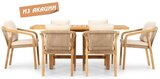Обеденная группа Ravona, рассчитанная на 8 персон, - это садовая мебель из АКАЦИИ в современном стиле. Дизайнерские формы мебели из этой коллекции создадут стильный и узнаваемый облик зоны отдыха на вашей веранде. Ravona - это современная коллекция садовой мебели из акации, выполненная в комбинации натурального веревочного плетения роуп, акации и бежевых подушек. Цвет натуральной твердой древесины представляет собой натуральный цвет с мелкой текстурой, придающий древесине приятный теплый вид. Ravona - это стиль и элегантность на Вашей веранде.