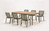 Обеденная группа Armona, рассчитанная на 6 персон, состоит из металлического стола с красивой реечной деревянной столешницей и кресел с мягкими подушками. Мебель Armona создана, чтобы выдержать испытание временем. Рама изделий изготовлена из алюминия с порошковым покрытием, что обеспечивает долговечность. Штабелируемые кресла оснащены элегантными подлокотниками из тикового дерева и съемными подушками, что делает их невосприимчивыми к различным погодным условиям.