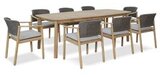 Freeport - это воплощение современного стиля и элегантности для вашего сада. Коллекция, созданная из натуральной акации в сочетании с изысканным веревочным плетением и серыми подушками, привносит уют и роскошь в любое открытое пространство. В состав набора входят большой обеденный стол и восемь удобных кресел с подушкой - идеальный ансамбль для обеда на свежем воздухе. Прочный деревянный каркас обеспечивает надежность и долговечность, а модный дизайн подчеркивает вкус и статус владельца. Freeport - это комфорт, стиль и природная эстетика на вашей веранде.