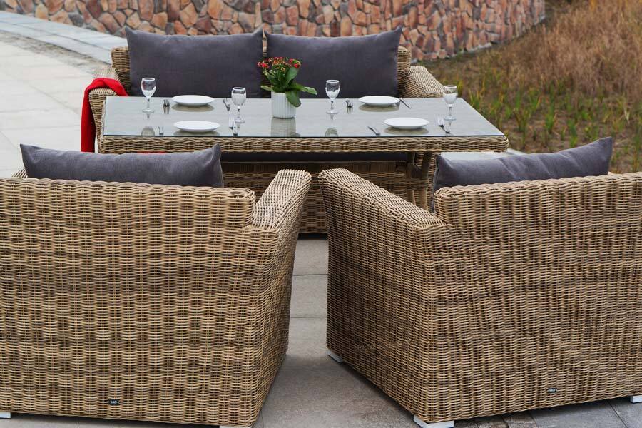 "Аффогато" обеденная группа из искусственного ротанга, цвет соломенный