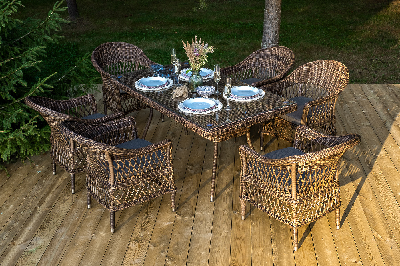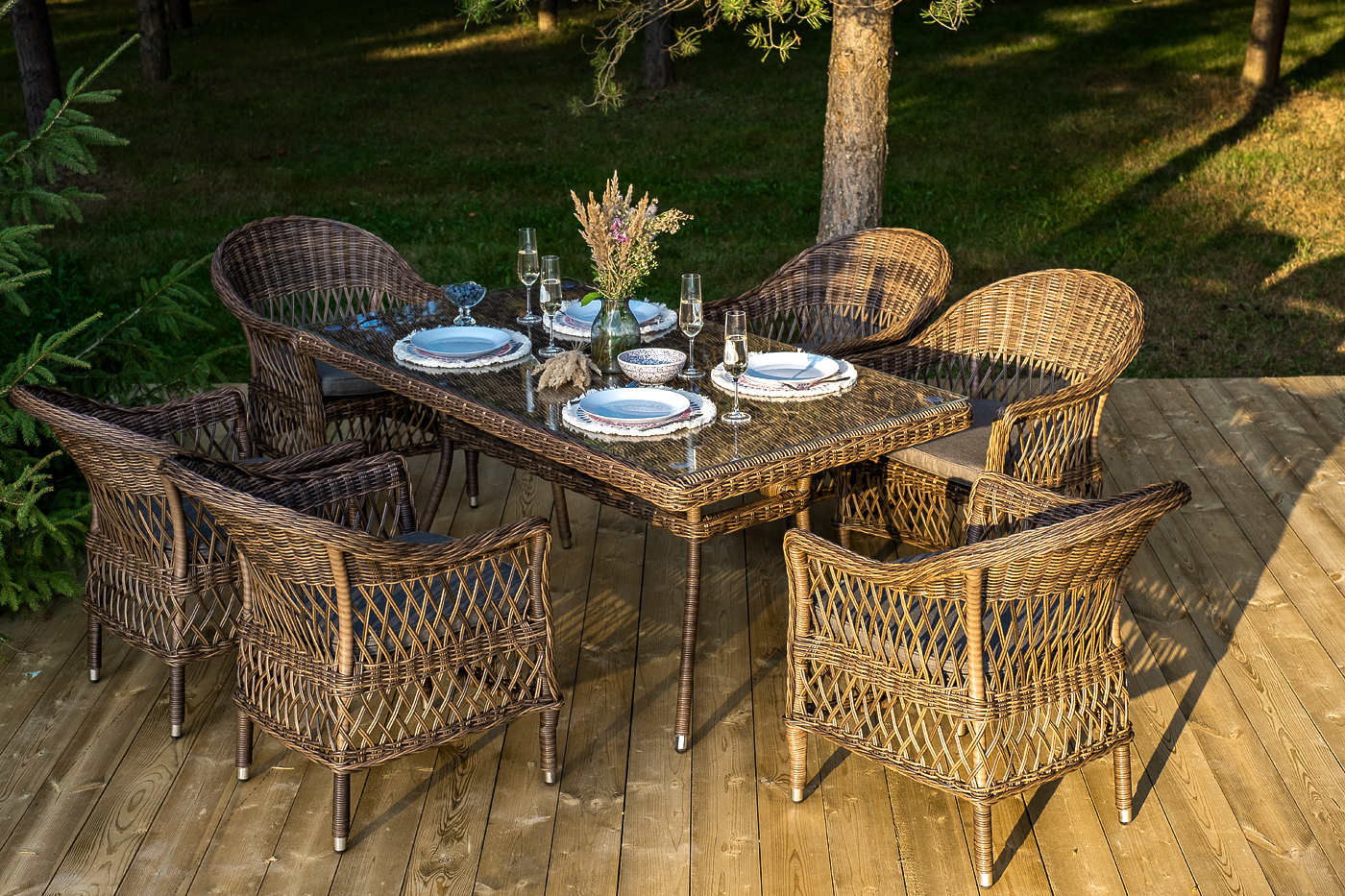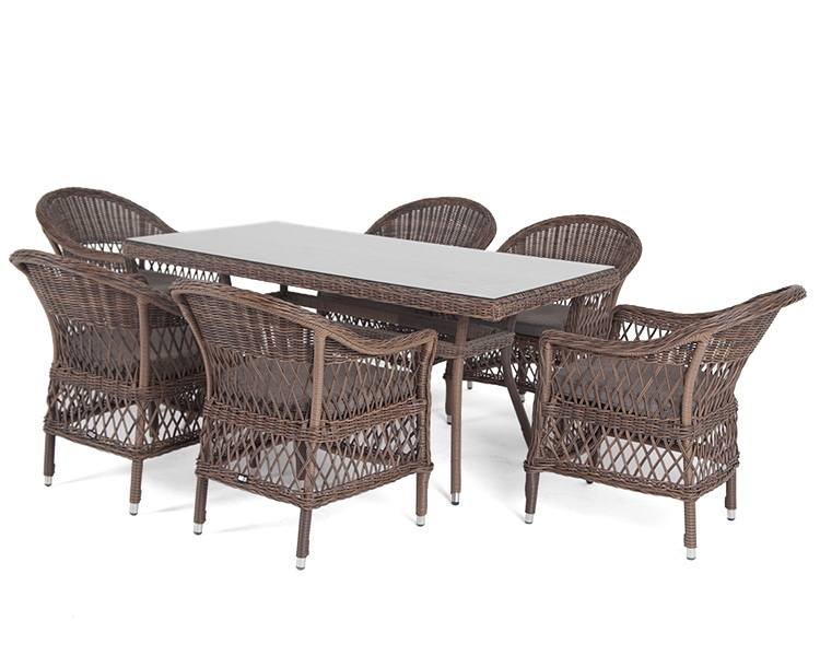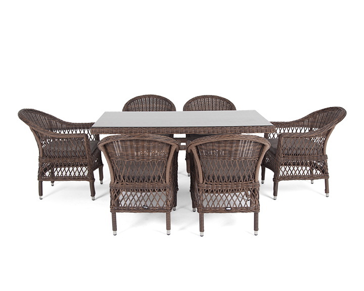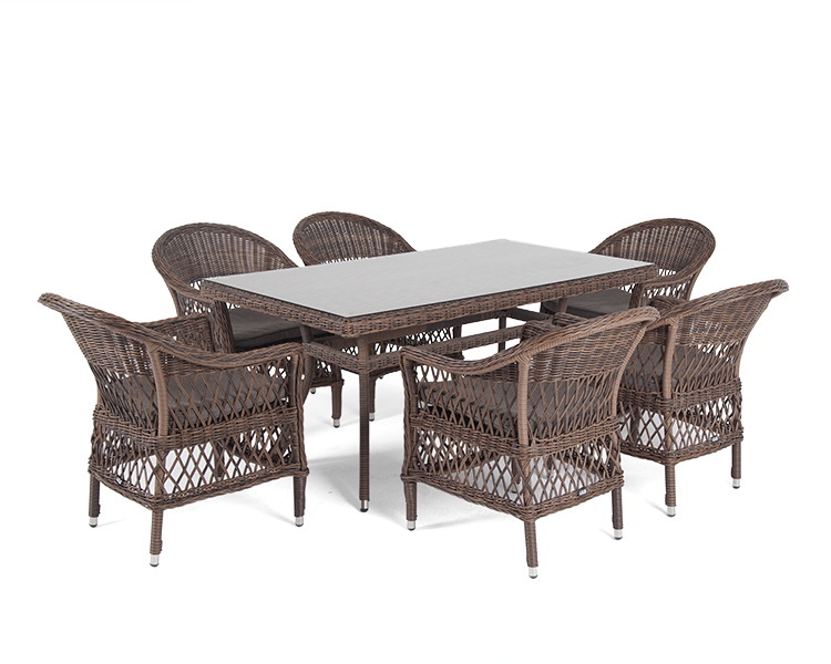 "Амароне" обеденная группа из искусственного ротанга на 6 персон, цвет коричневый