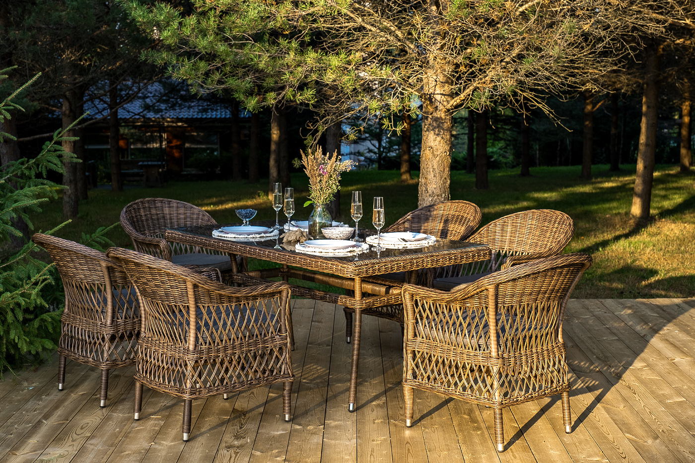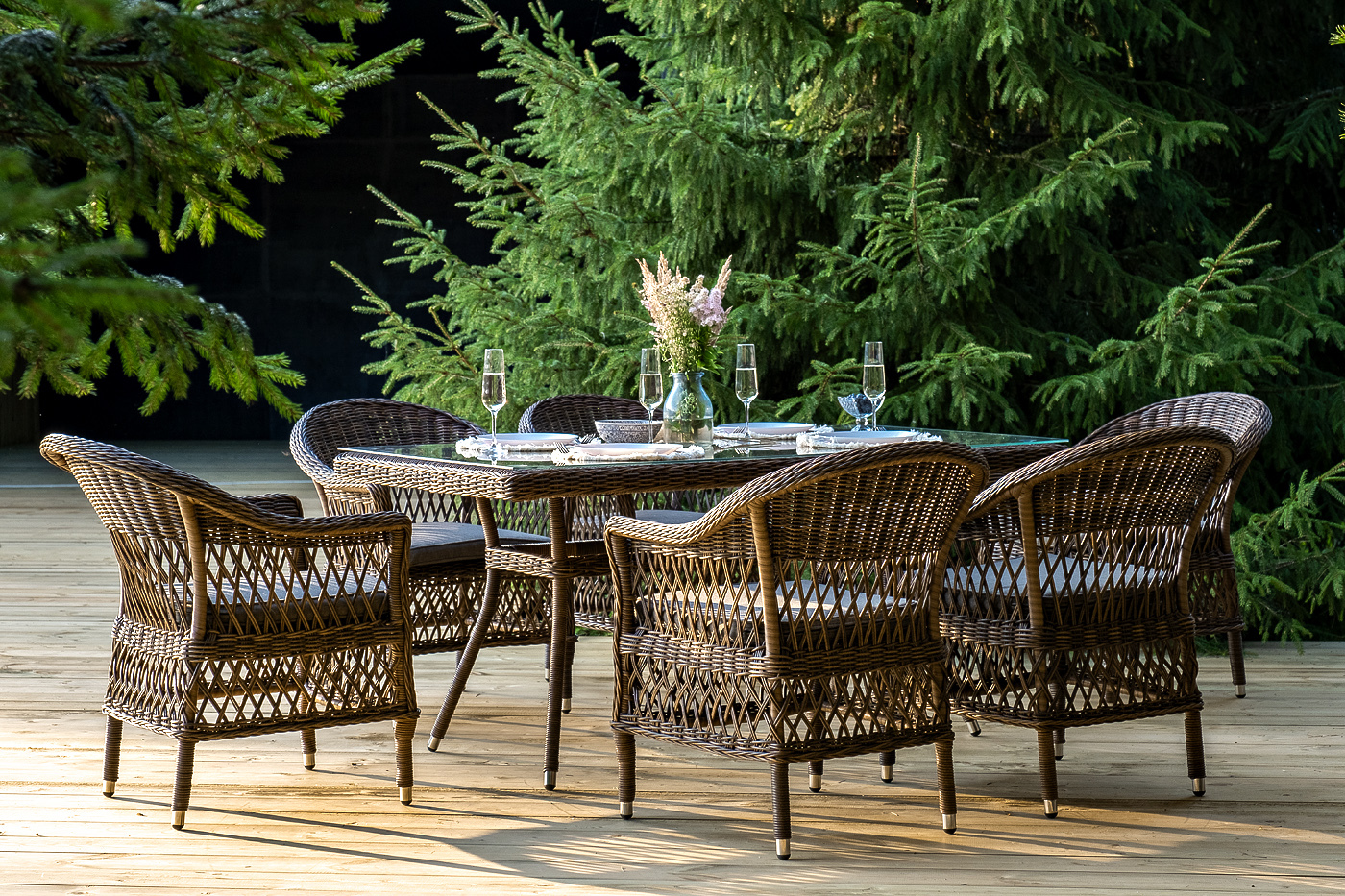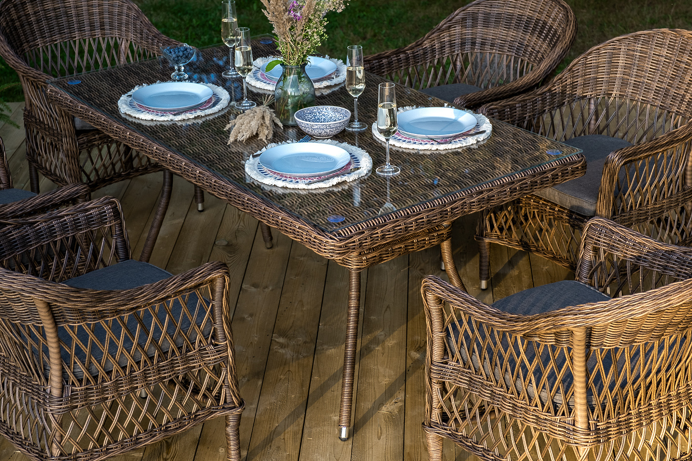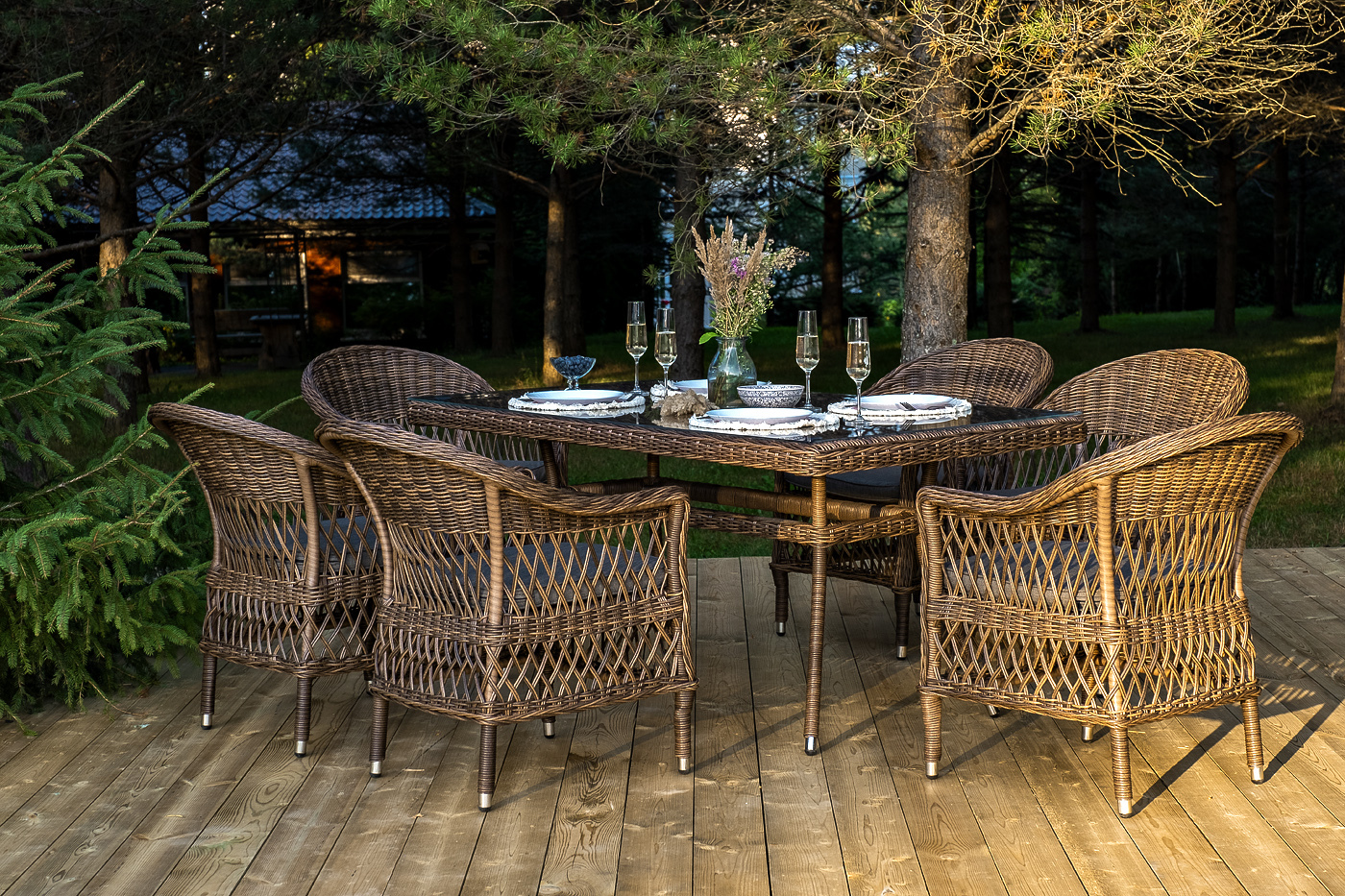 "Амароне" обеденная группа из искусственного ротанга на 6 персон, цвет коричневый
