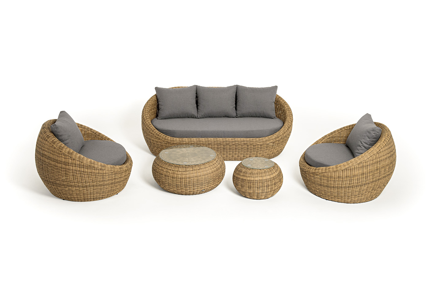 Комплект «Барселона» с плетением из искусственного круглого ротанга для обустройства лаунж-зоны. В ее составе находятся: - трехместный диван – 2100×1000×830 мм. - два кресла – 1120×980×830 мм. - журнальный столик – 900×900×390 мм. - кофейный столик - 600×600×390 мм. В качестве основы применяется прочный алюминиевый каркас. Цвет комплекта – соломенный. На креслах и диване предусмотрены мягкие подушки, съёмные чехлы которых пошиты из полиэстера, плотностью 300гр/м2. Ткань в обязательном порядке пропитывается влагоотталкивающими составами. Поверхность плетеного столика представляет столешница из закаленного стекла – 5 мм. Габариты упаковки и комплектация двух коробок: 1 кор. (диван, журнальный, кофейный столик): 2150×1100×840 мм. 2 кор. (два кресла): 1150×1150×1180 мм. "Барселона" диван из искусственного ротанга трехместный, цвет соломенный 1шт. 2 100Х1 000Х830, "Барселона" кресло из искусственного ротанга, цвет соломенный 2шт. 1 120Х980Х830, "Барселона" журнальный столик из искусственного ротанга, цвет соломенный 1шт. 900Х900Х390, "Барселона" кофейный столик из искусственного ротанга, цвет соломенный 1шт. 600Х600Х390,Бренд | 4SIS |