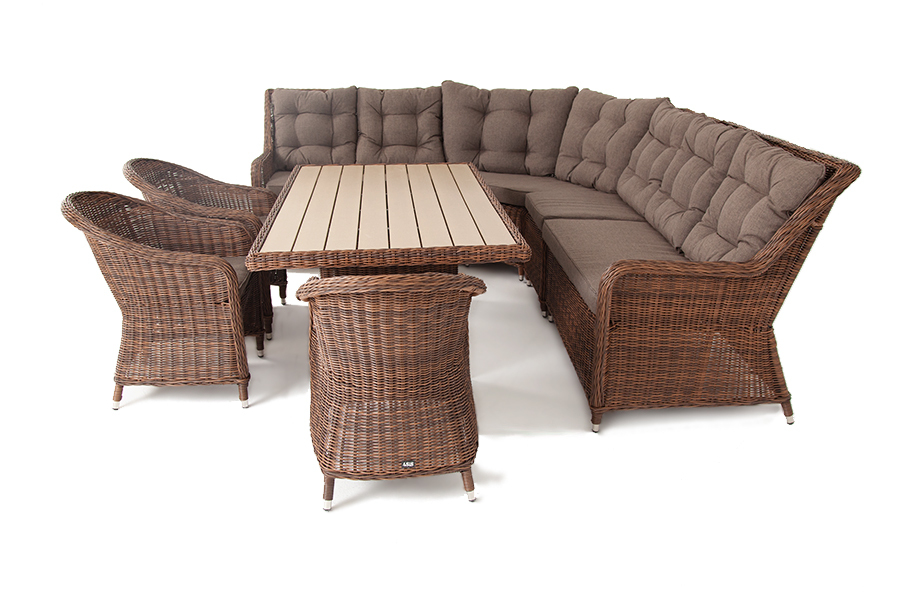"Бергамо" обеденная группа угловая из искусственного ротанга, цвет коричневый