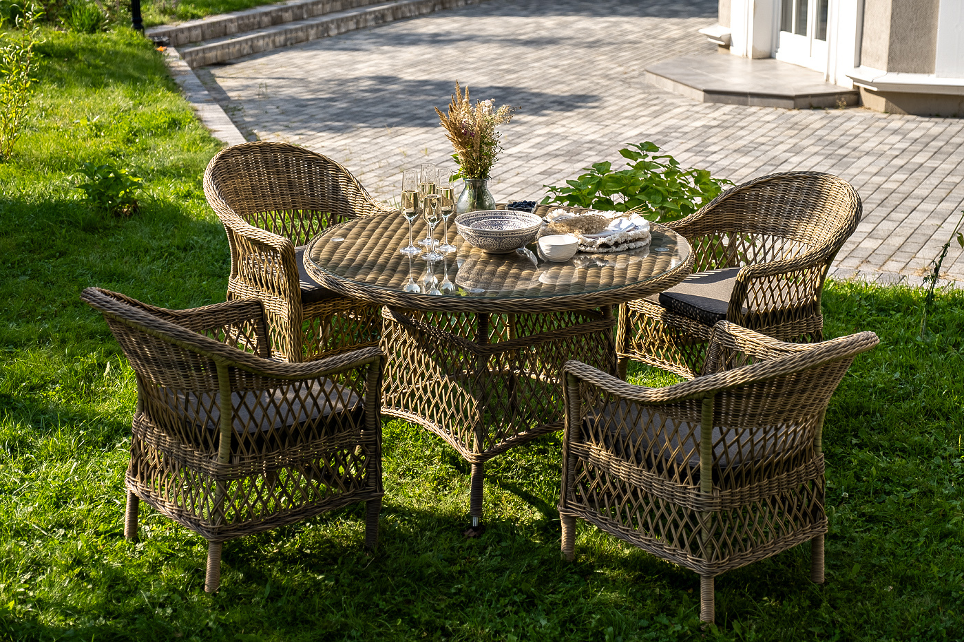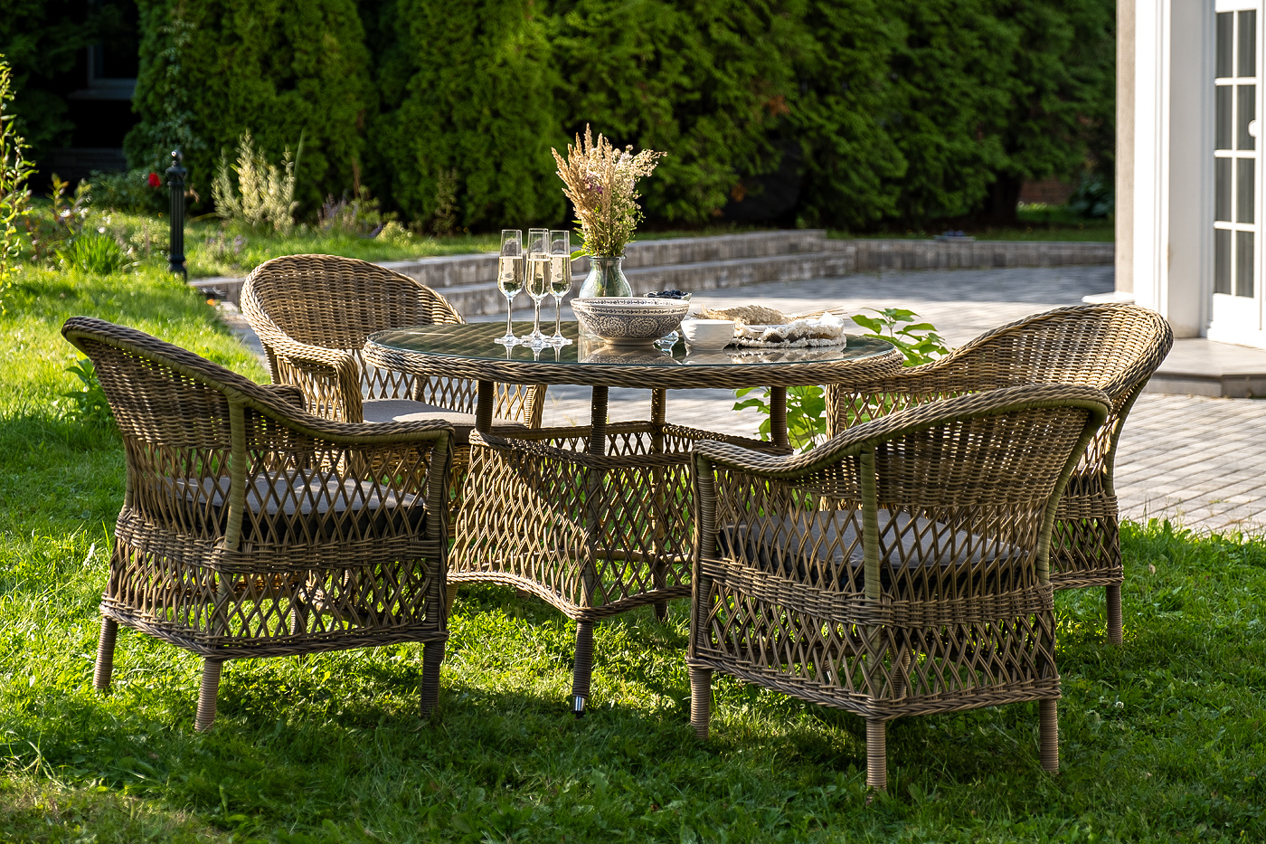 "Дольче" обеденная группа из искусственного ротанга, цвет соломенный