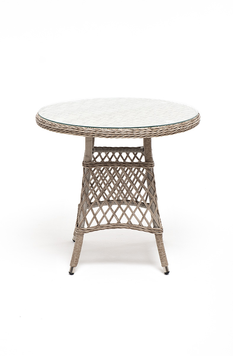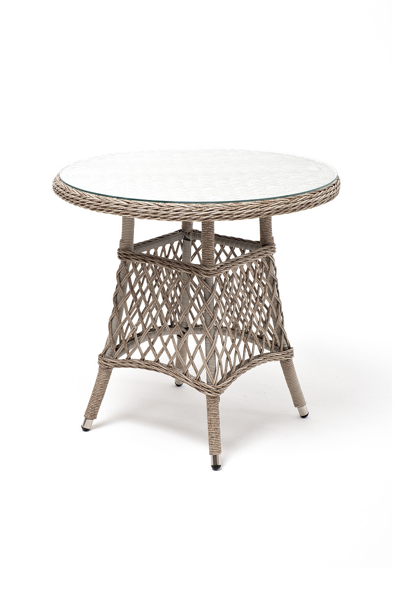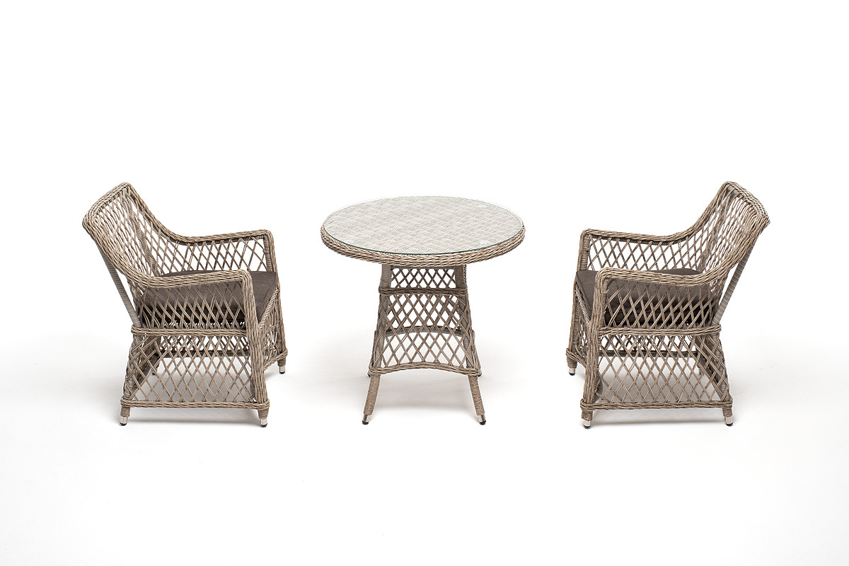 Комплект «Эспрессо–80 L» можно использовать в качестве обеденной группы на 2 персоны или как кофейный комплект на балконе или террасе. В плетеный комплект входит круглый стол «Эспрессо» диаметром 80 см с ударопрочной стеклянной столешницей и 2 кресла коллекции «Латте» 550×660×850 мм. Набор представлен в бежевом цвете. "Эспрессо" плетеный круглый стол, диаметр 80 см, цвет бежевый 1шт. 800Х800Х750, "Латте" плетеное кресло из искусственного ротанга, цвет бежевый 2шт. 550Х660Х850,Бренд | 4SIS |