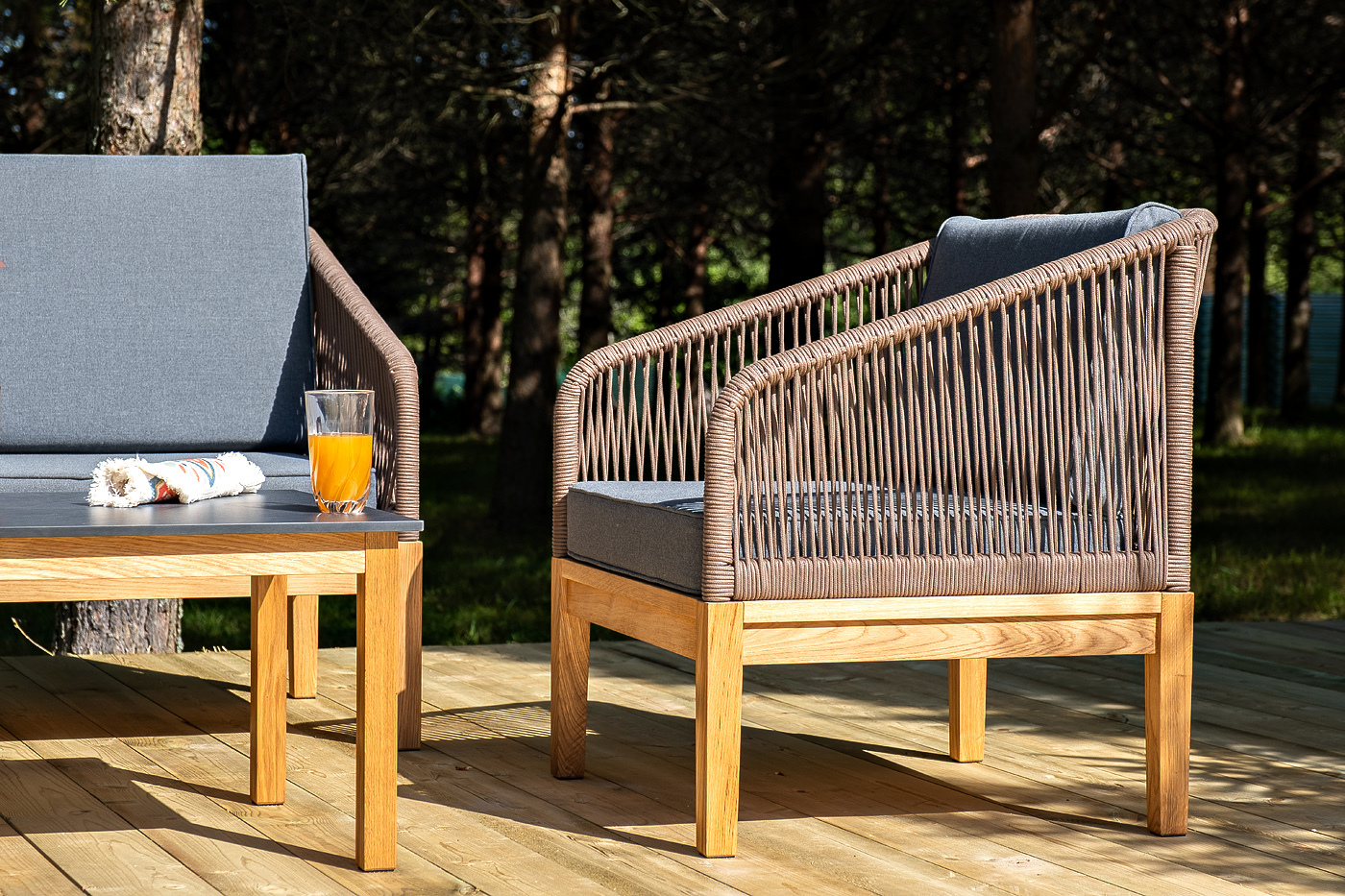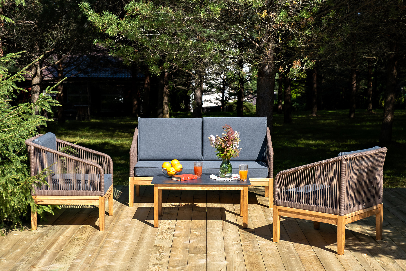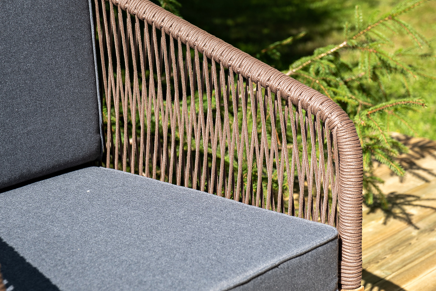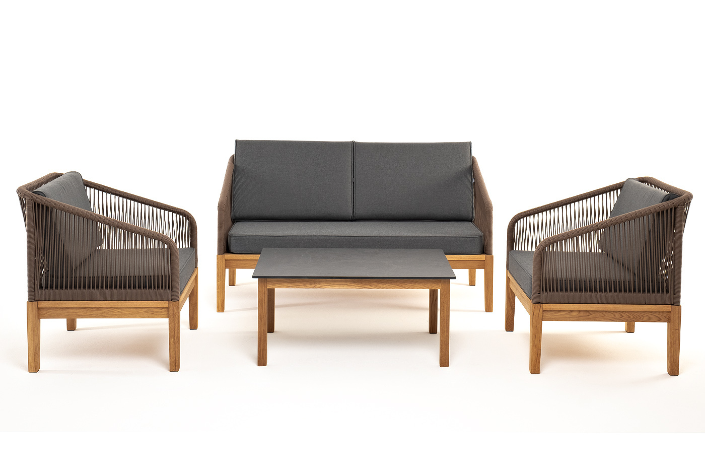 "Канны" лаунж-зона 4-местная из роупа со столиком "Канны" (серый гранит), основание дуб, роуп коричневый