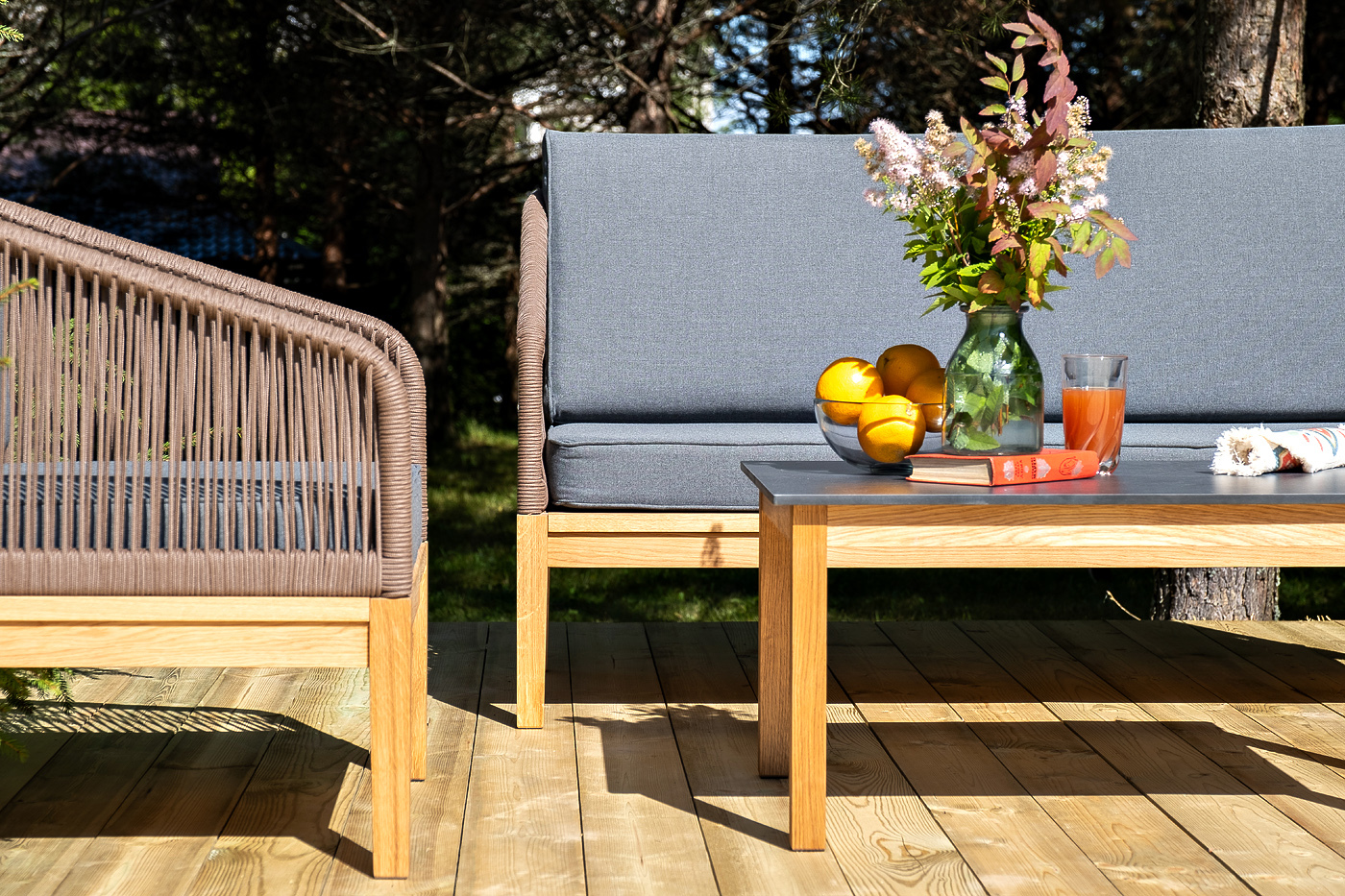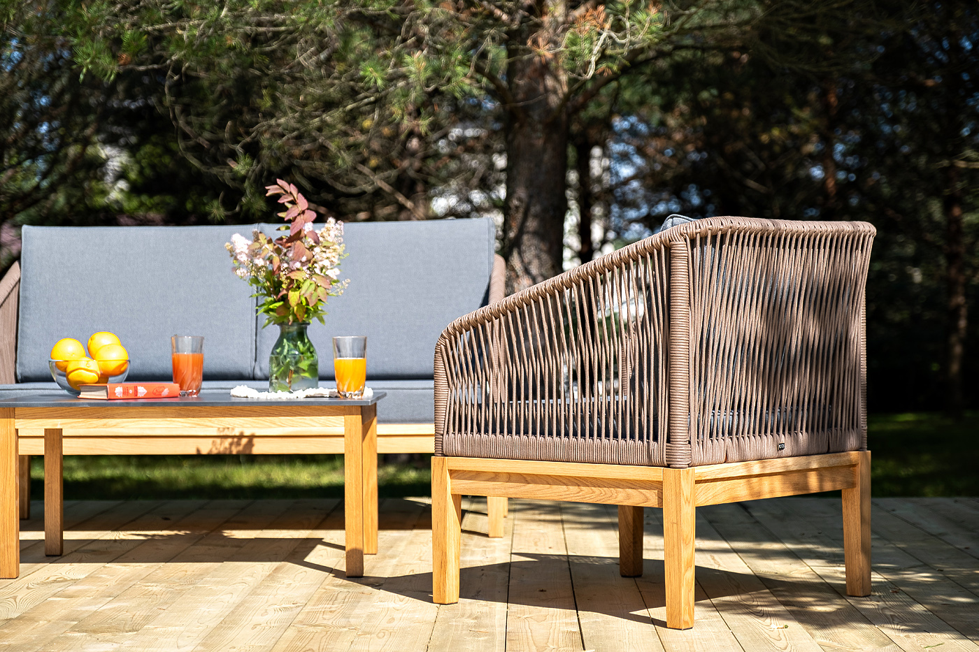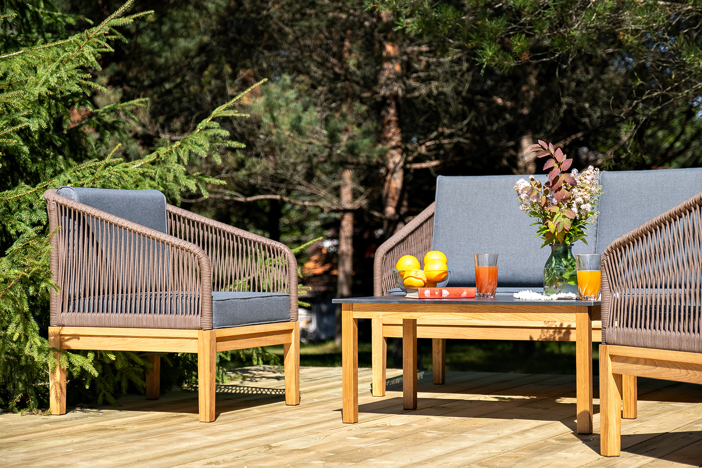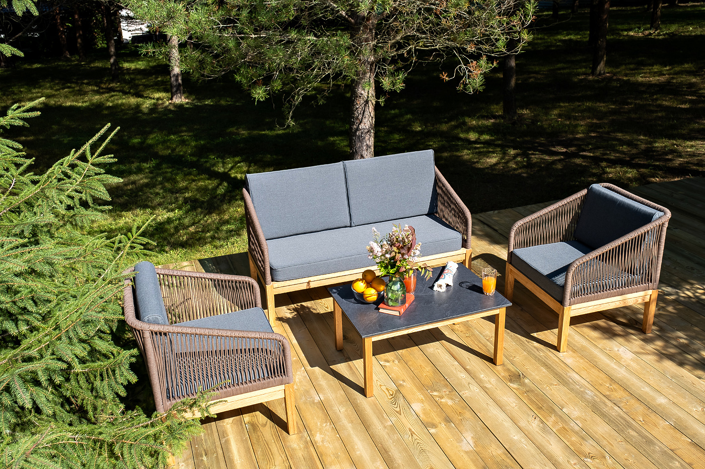 "Канны" лаунж-зона 4-местная из роупа со столиком "Канны" (серый гранит), основание дуб, роуп коричневый