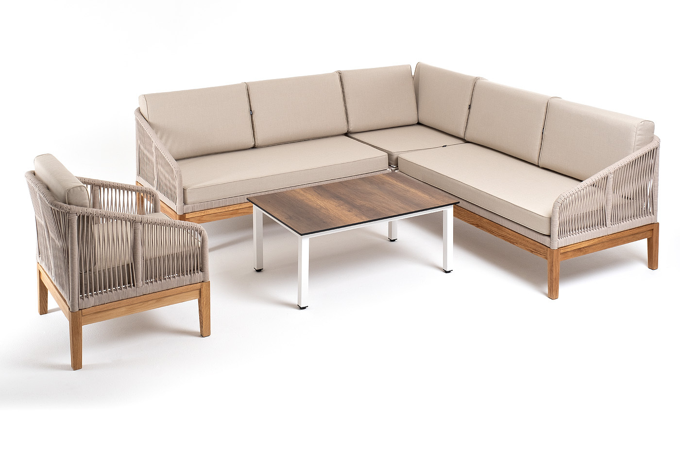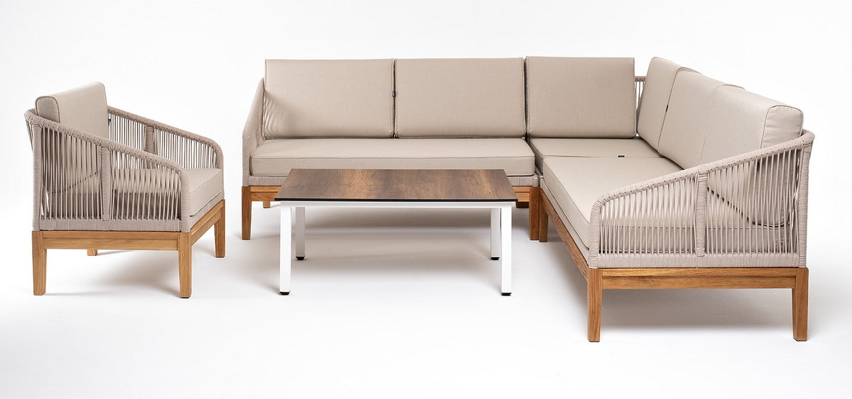"Канны" модульная угловая лаунж-зона из роупа (веревки), основание дуб, цвет бежевый