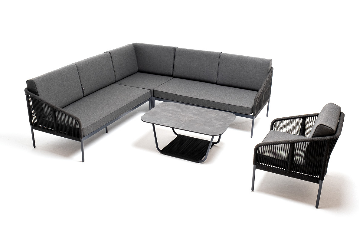 "Канны" модульная угловая лаунж-зона из роупа (веревки), цвет темно-серый