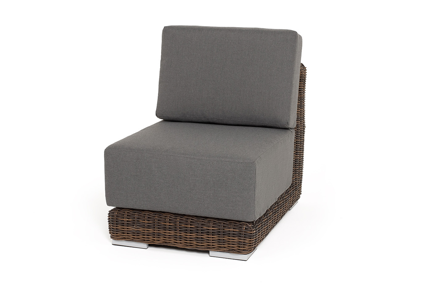 Прямой модуль «Капри», выполненный из круглого искусственного ротанга коричневого оттенка, позволяет использовать не только как самостоятельный элемент, но и быть частью лаунж-зоны, в которую данная модель превосходно интегрируется. Габариты составляют - 600×900×650 мм, в комплект входят подушки серого цвета.Бренд | 4SIS |