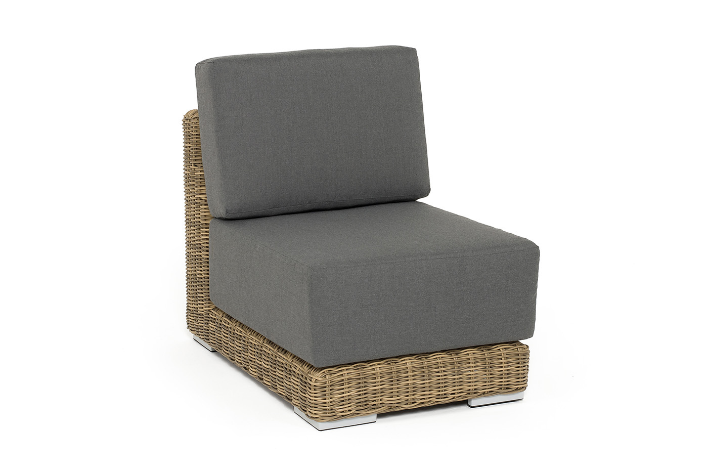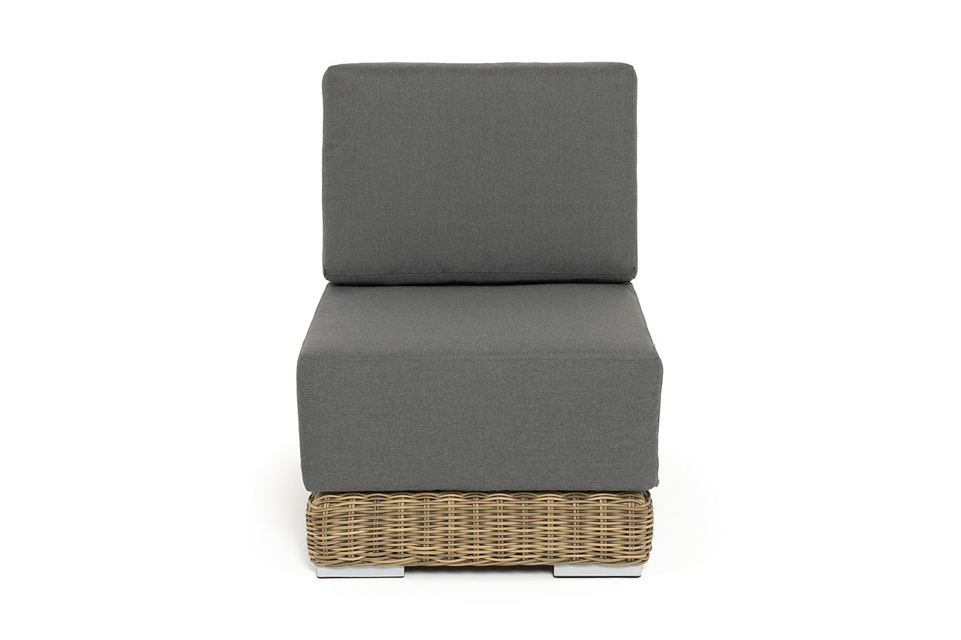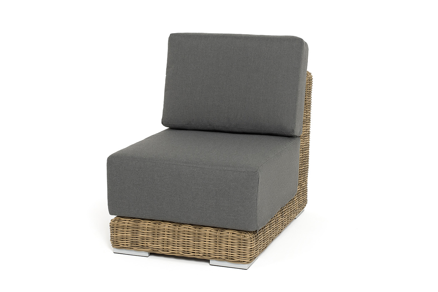 Прямой модуль «Капри», выполненный из круглого искусственного ротанга соломенного оттенка, позволяет использовать не только как самостоятельный элемент, но и быть частью лаунж-зоны, в которую данная модель превосходно интегрируется. Габариты составляют - 600×900×650 мм, в комплект входят подушки серого цвета.Бренд | 4SIS |