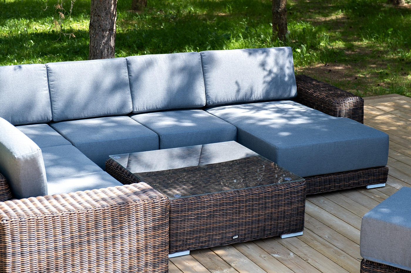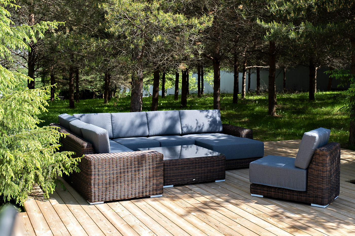 Составная и легко трансформирующаяся лаунж-зона «Капри» гармонично дополнит зону отдыха на частной территории. Она состоит из целого набора мебели, в который входит: - плетеная кушетка – 1460×1100×650 мм. - модуль правый – 1500×900×650 мм. - три прямых модуля – 600×900×650 мм. - модуль угловой – 900×900×650 мм. - журнальный столик - 950×950×350 мм. При изготовлении каркаса всех составляющих комплекта используется высокопрочный алюминий. Он дополнен круглым плетением из искусственного ротанга. Цвет – коричневый. Модули дивана и кушетка укомплектованы подушками со съёмными чехлами серого цвета. Защитные качества материала усилены путем его обработки влагоотталкивающими составами. Плетеный столик имеет стеклянную столешницу, изготовленную из прочного закаленного стекла, толщина - 5 мм. Габариты упаковки и комплектация трёх коробок: 1 кор. (прямой и угловой модуль): 1150×800×940 мм. 2 кор. (правый и два прямых модуля): 1560×850×1150 мм. 3 кор. (журнальный столик): 970×970×390 мм. "Капри" кушетка из искусственного ротанга, цвет коричневый 1шт. 1 460Х1 100Х650, "Капри" модуль диванный правый с подушками, цвет коричневый 1шт. 1 500Х900Х650, "Капри" модуль диванный прямой с подушками, цвет коричневый 3шт. 600Х900Х650, "Капри" модуль диванный угловой с подушками, цвет коричневый 1шт. 900Х900Х650, "Капри" журнальный столик плетеный, цвет коричневый 1шт. 950Х950Х350,Бренд | 4SIS |