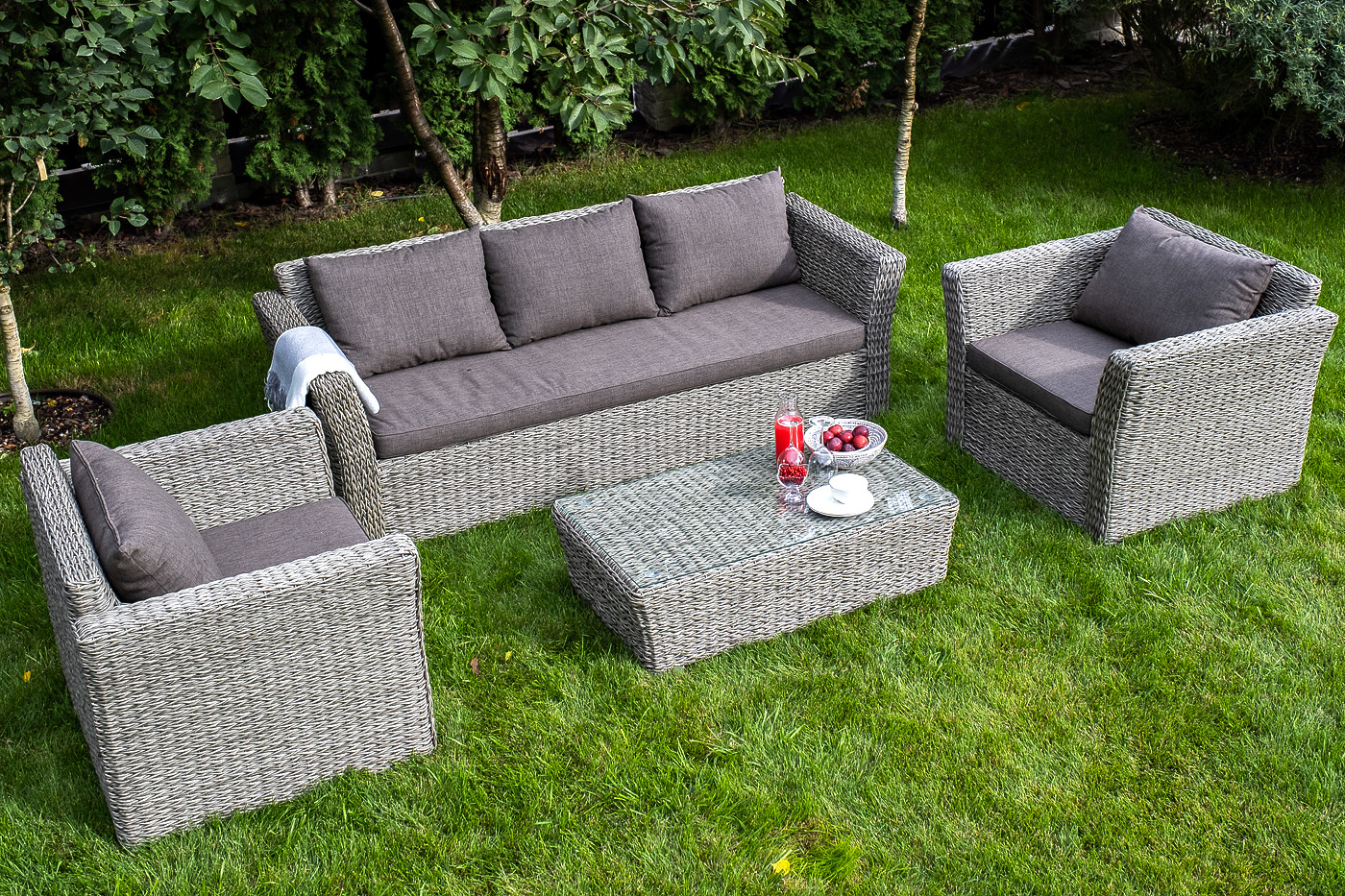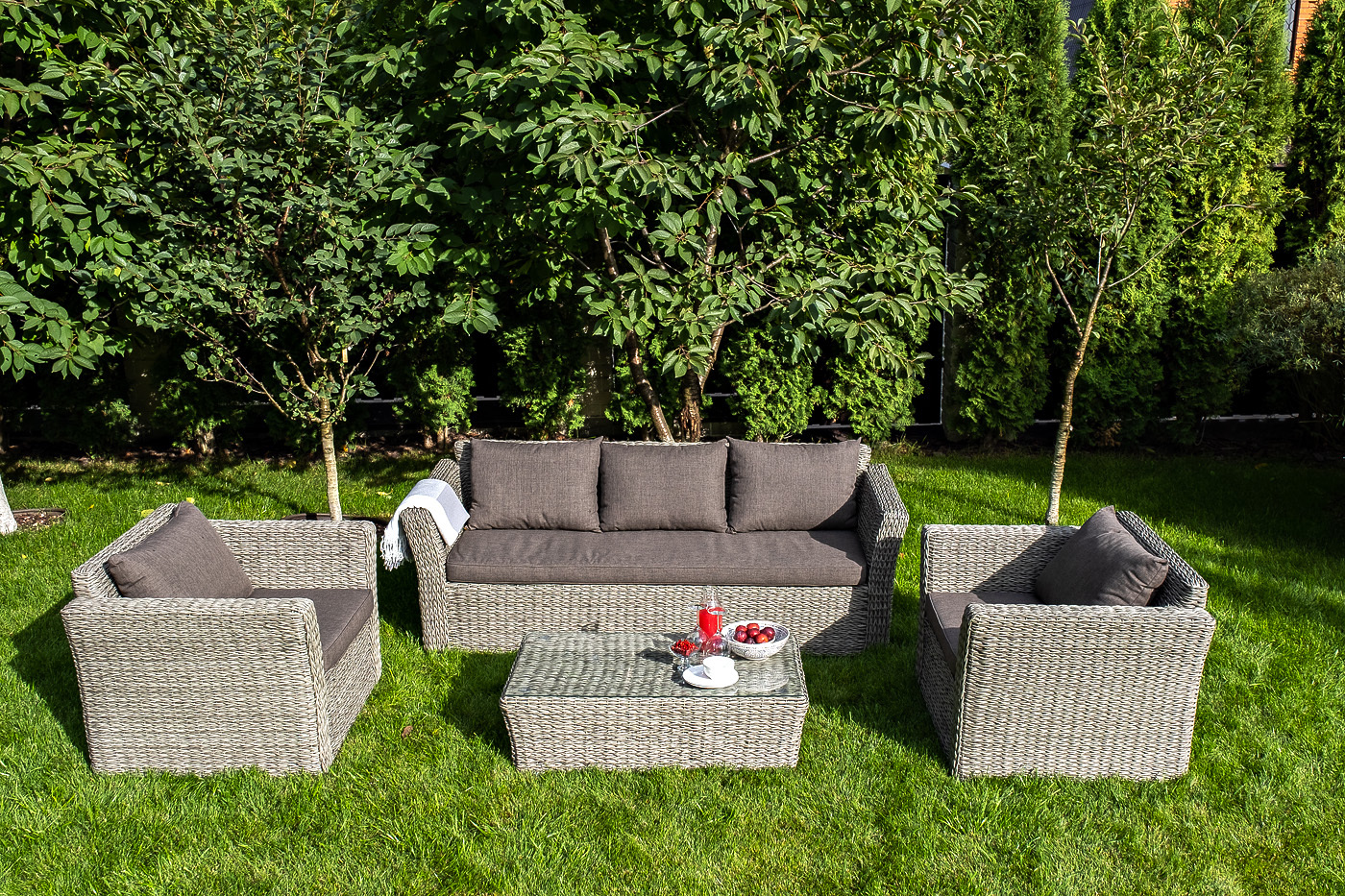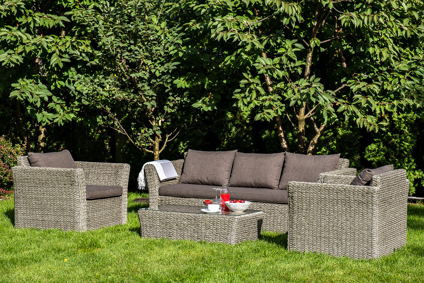 "Капучино" лаунж-зона из искусственного ротанга (гиацинт), цвет серый