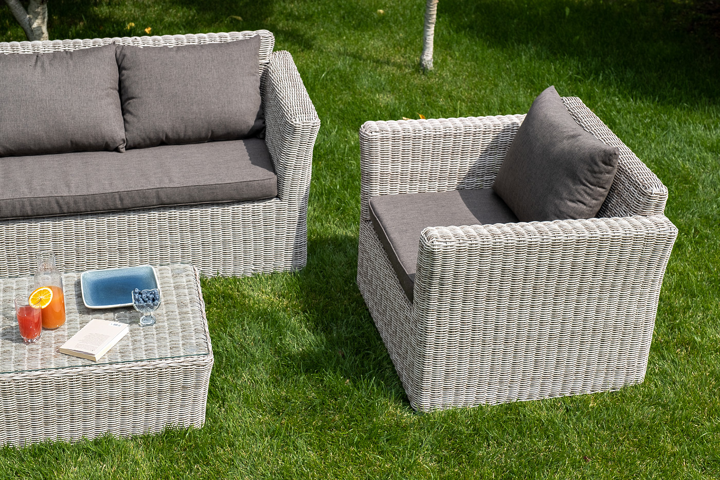 Лаунж-зона «Капучино» отличается хорошей вместительностью, поэтому подходит для комфортного отдыха компании до пяти человек. Комплект состоит из: - двух кресел (размер – 1040×865×815 мм). - журнального столика (размер – 1100×660×340 мм). - трехместного дивана (размер – 2220×865×815 мм). Из алюминия сделан устойчивый каркас мебели. Ее поверхность дополнена искусственным ротангом, из которого сделано ручное плетение, цвет бежевый. Кресла и диван идут в комплекте с подушками с серыми чехлами. Они пошиты из качественного полиэстера с плотностью 300гр/м2. Материал предварительно проходит обработку влагоотталкивающей пропиткой. Столик дополнен практичной столешницей из стекла толщиной 5 мм. "Капучино" диван из искусственного ротанга трехместный, цвет бежевый 1шт. 2 220Х865Х815, "Капучино" кресло из искусственного ротанга, цвет бежевый 2шт. 1 040Х865Х815, "Капучино" журнальный столик из искусственного ротанга, цвет бежевый 1шт. 1 100Х660Х340,Бренд | 4SIS |