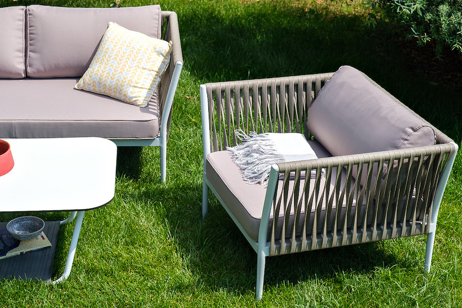 Лаунж-зона «Касабланка» расчитана на размещение 4-х персон. Состоит из: - двухместного дивана - 1600x800х695 мм. - двух кресел - 900×800×695 мм каждое. - журнального столика - 900х600х420 мм. Диван и кресла изготовлены их алюминиевого прочного каркаса, оплетенного ручным способом роупом серо-коричневого цвета. Это эластичные ленты из полиэфирных волокон высокого качества. Каркас окрашен в светло-серый (RAL7035) цвет износостойкой порошковой краской. Журнальный столик также имеет алюминиевый каркас белого цвета. Столешница выполнена из монолитного компакт-пластика HPL молочного оттенка. Нижняя часть столика задекорирована роупом серого цвета и представляет дополнительную полку для хранения. "Касабланка" кресло плетеное из роупа, каркас алюминий светло-серый (RAL7035) муар, роуп серо-коричневый 23мм, ткань бежевая 052 2шт. 900Х800Х695, "Касабланка" диван 2-местный плетеный из роупа, каркас алюминий светло-серый (RAL7035) муар, роуп серо-коричневый 23мм, ткань бежевая 052 1шт. 1 600Х800Х695, "Гранада" журнальный стол 90х60см из HPL, цвет "молочный", каркас белый муар, роуп темно-серый круглый 1шт. 900Х600Х420,Бренд | 4SIS |